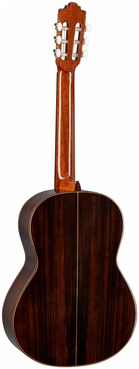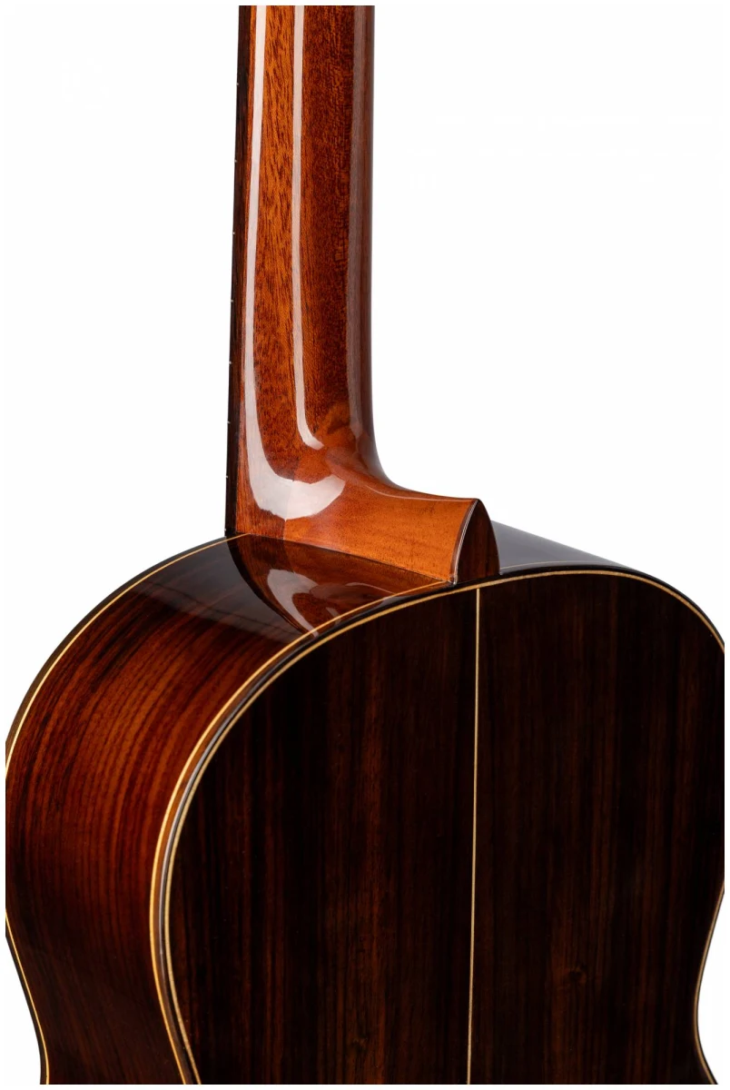 Нижняя дека и обечайки этой гитары изготовлены из ламинированного индийского палисандра и имеют красивый «испанский» тон. Инструмент выполнен в глянцевой отделке.