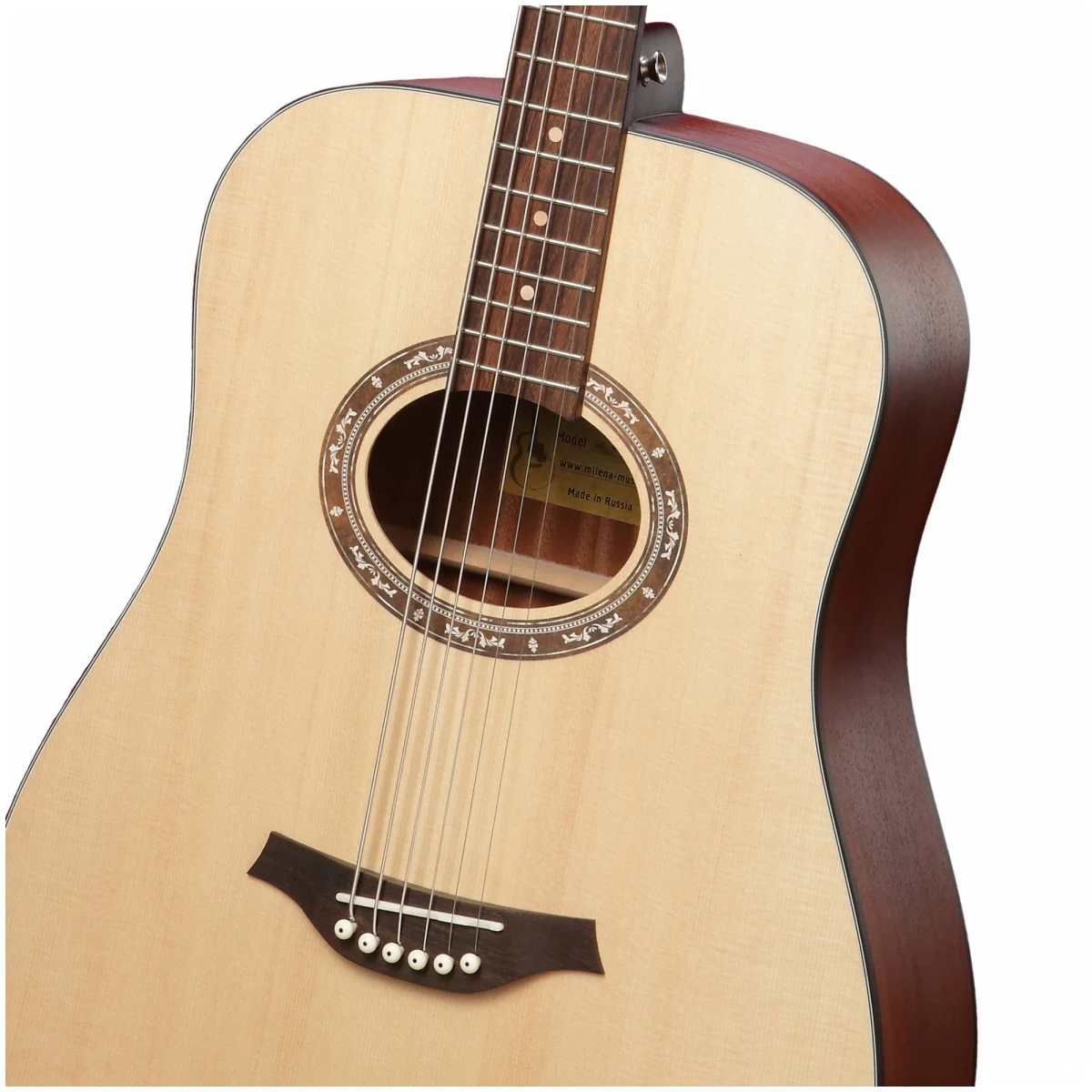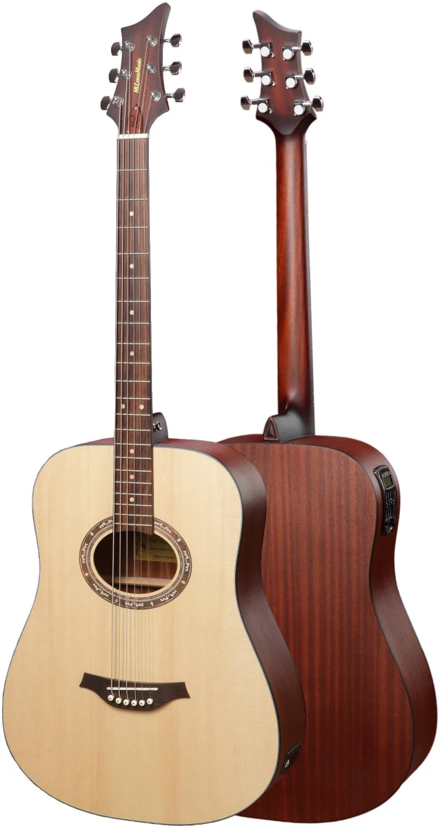 Дека из массива ели обладает очень ярким и пробивным звучанием, способным удивить даже самого опытного музыканта. Корпус «дредноут» обеспечивает этой гитаре объёмный и обволакивающий звук. Гриф шириной 43 мм с D-образным профилем, позволят Вам играть с комфортом. Радиусная накладка и струнодержатель из палисандра великолепно подчёркивают серьёзность данного инструмента. Надёжное шип‑пазное соединение грифа с корпусом «Ласточкин хвост» обеспечит Вам долгий срок службы инструмента, а вставка из палисандра обеспечит грифу большую жёсткость. Натуральная отделка с открытыми порами не сковывает древесину, позволяя раскрыться звучанию инструмента в полной мере, и даёт возможность оценить природную дерева.