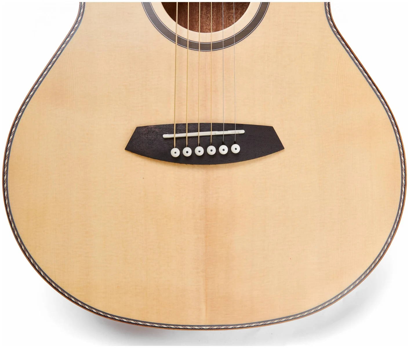 TOM GS-T1ME электроакустическая гитара в уменьшенном фолк корпусе с верхней декой из массива ели и корпусом из красного дерева. Звонкий и легкий инструмент в матовой отделке, в комплекте качественный чехол.