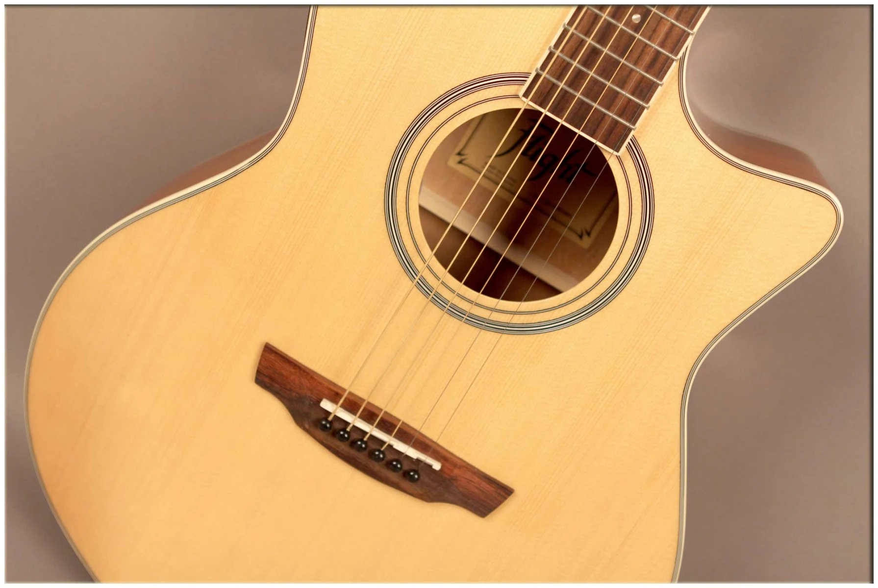 Электроакустическая гитара Flight AG-210 CEQ NA – прекрасный инструмент, который станет вашим верным спутником в любой ситуации. Обратите внимание на скос на корпусе под правую руку! Раньше таким скосом обладали только электрогитары, теперь Flight AG-210 CEQ NA воплощает это удачное решение для акустического инструмента.