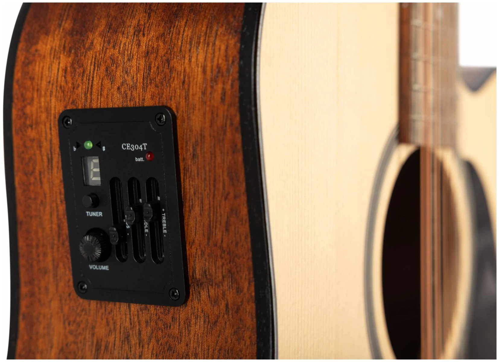 Модель JET JDEC-255/12 OP это 12-ти струнная электроакустическая гитара с активным звукоснимателем с трехполосным эквалайзером и встроенным тюнером. Форма корпуса Дредноут (Dreadnought) с вырезом. У инструмента современное, ультратонкое покрытие Open pore, ставшее настоящим трендом у производителей гитар. Дека с таким покрытием становится легкой и отзывчивой, что очень нравится музыкантам. Визуально инструменты с покрытием Open pore отличаются ясно видимыми и ощущаемыми ложбинками. Инструменты с таким покрытием очень приятны на ощупь – они имеют бархатистую текстуру, тактильно кажутся натуральнее и естественнее. Этот же эффект подчеркивается разрезом древесины верхней деки, который раскрывает оригинальную структуру волокон древесины.