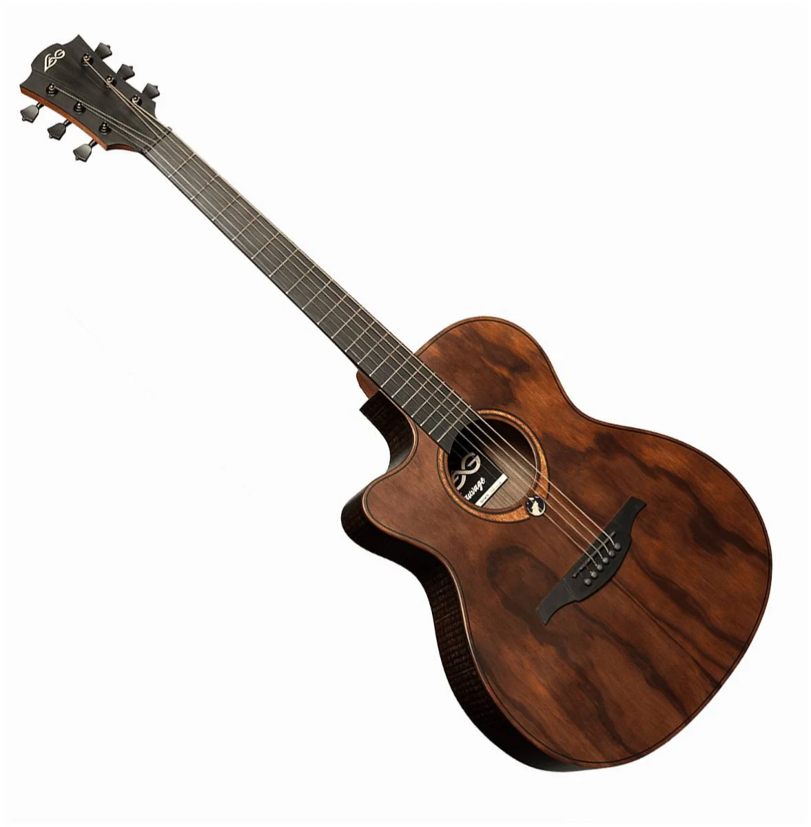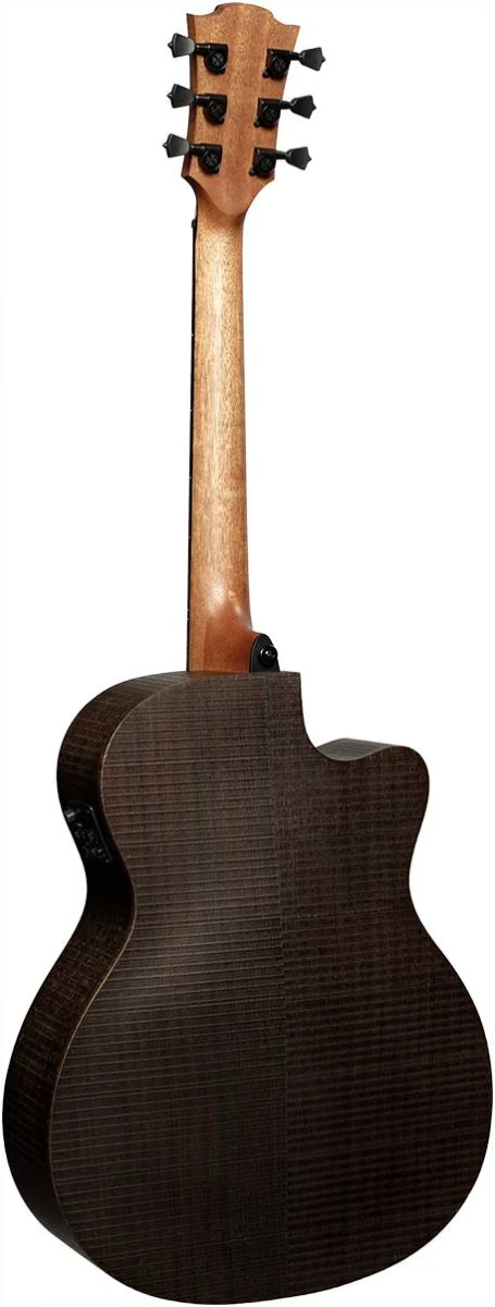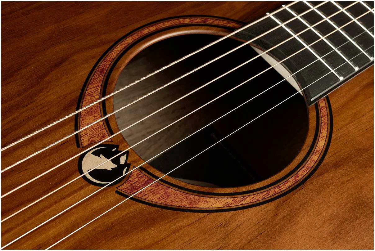 Закругленная задняя дека из запеченного эвкалипта серии SAUVAGE дает непревзойденный полнозвучный тон и усиливает акустические качества инструмента.
