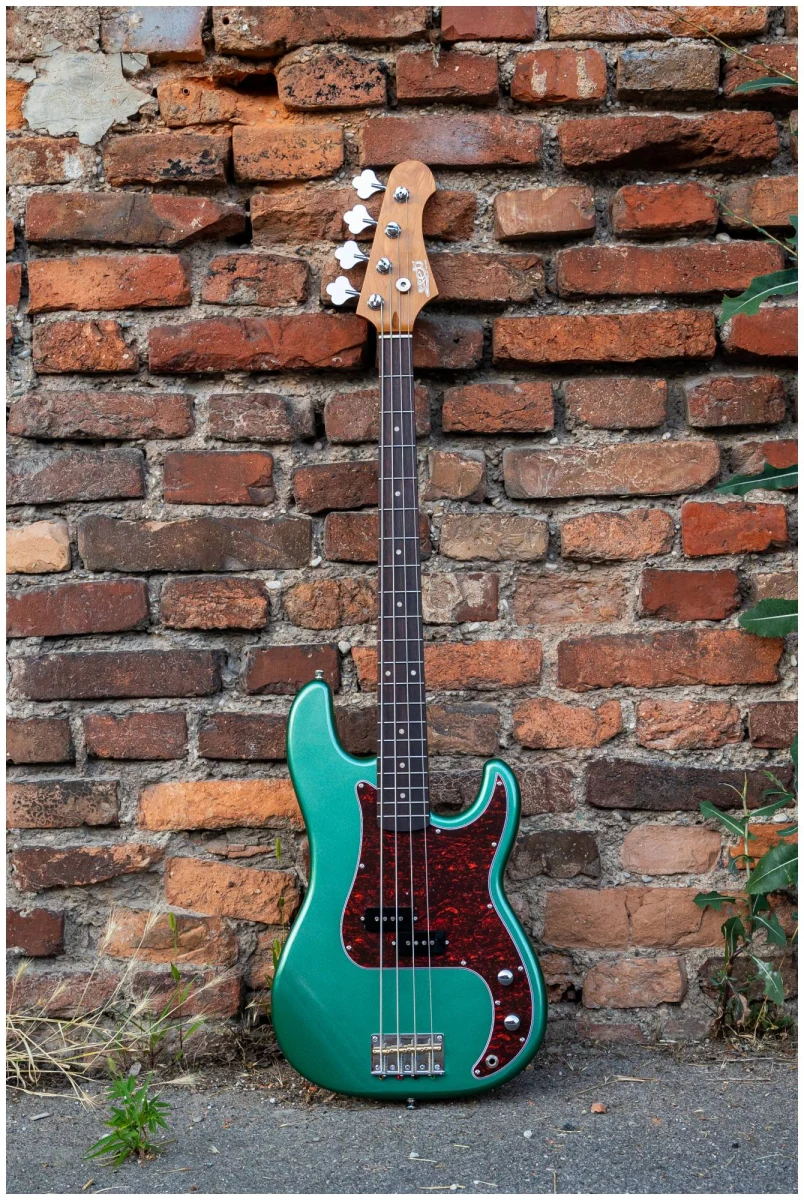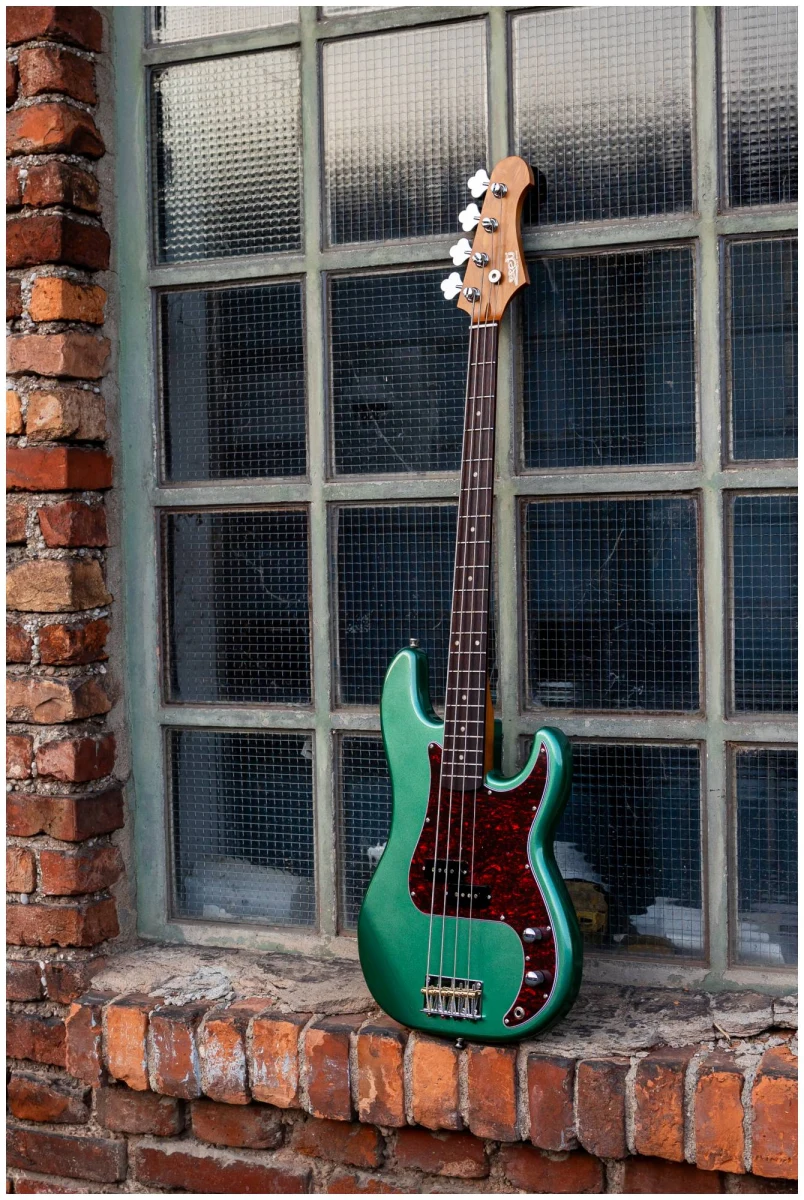 JET JPB-300, окрашенный в роскошный зеленый цвет, изготовлен с корпусом из печеного тополя, грифом из запечённого клена и накладкой на гриф из палисандра, этот 4-струнный бас обеспечивает исключительные игровые возможности и оснащен высококачественными звукоснимателями, которые обеспечивают мощные, пробивные низы и чистые, артикулированные верхи.