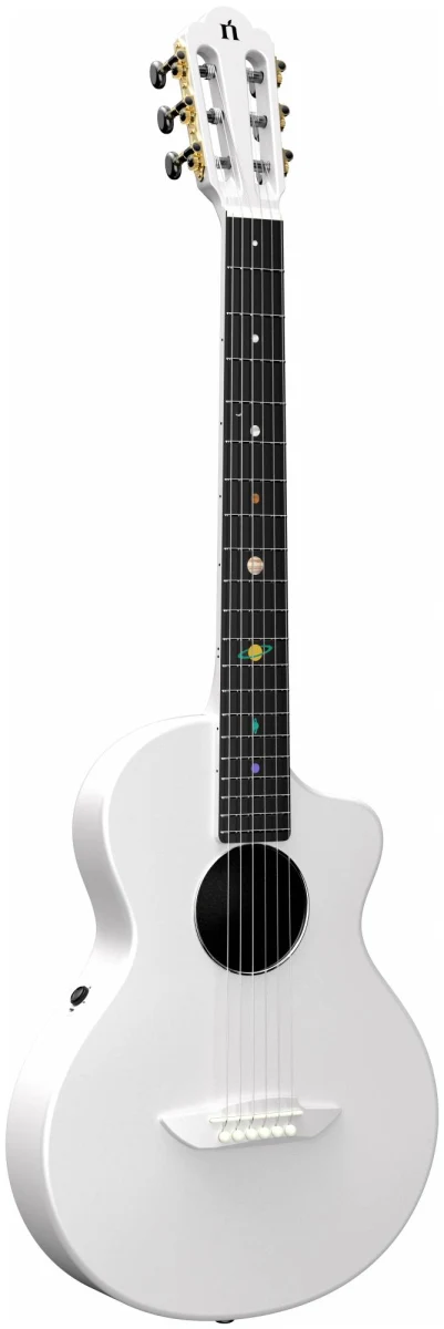 Эта гитара про прочность, стиль и исключительный звук. Инструменты серии Cosmos изготовлены полностью из карбонового композита, что считается прочнее и долговечнее дерева. Оно не подвержено деформации при различных скачках температуры и не портится со временем. Именно эти характеристики и легкий вес позволяют гитарам быть идеальным вариантом для любых путешествий: будь это снежные горы, пляжи или даже пустыни.