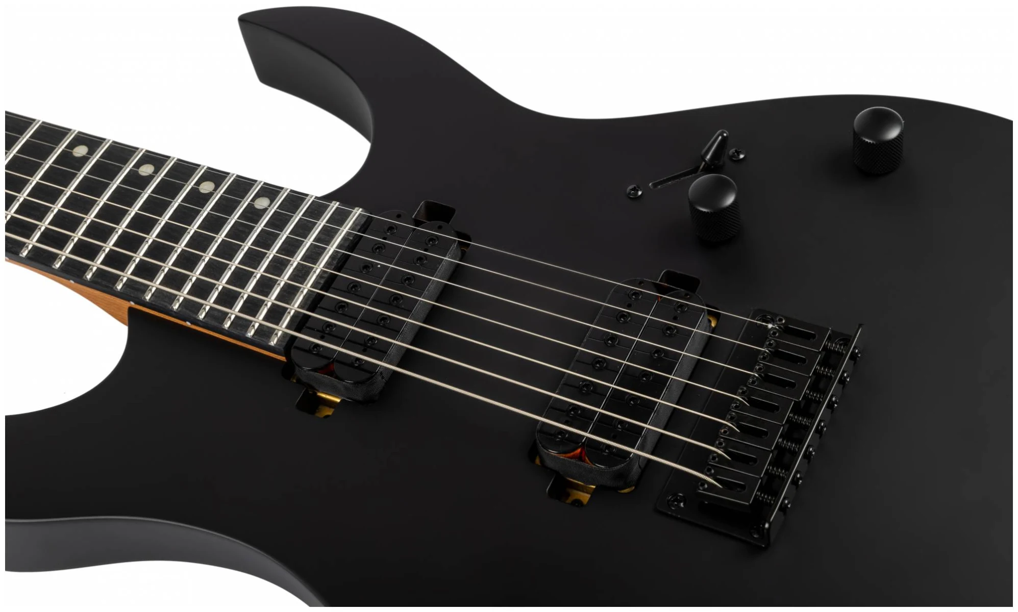 Накладка грифа из искусственного черного дерева (Ebony Tech) с 24 jumbo ладами обеспечивает плавную и отзывчивую игру, идеально подходящую для продвинутых и сложных техник.