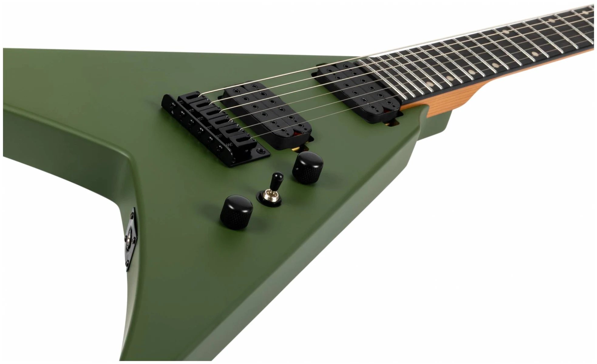 Благодаря корпусу из печеного тополя и грифу из канадского печеного клёна с сатинированной отделкой, V-400 обеспечивает исключительную прочность и комфорт при игре. Накладка грифа из искусственного черного дерева (Ebony Tech) с 24 Jumbo ладами обеспечивает лёгкую скорость и точность для сложных риффов и соло.