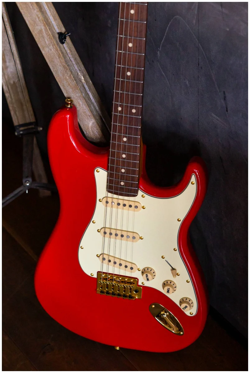 JET JS-380 RD G — это инструмент в классической и самой популярной форме корпуса – Стратокастер. У инструментов JS-380 профиль грифа – Modern C. Это наиболее распространенный современный профиль грифа, у таких грифов удобный овальный профиль, который подходит для большинства стилей игры.