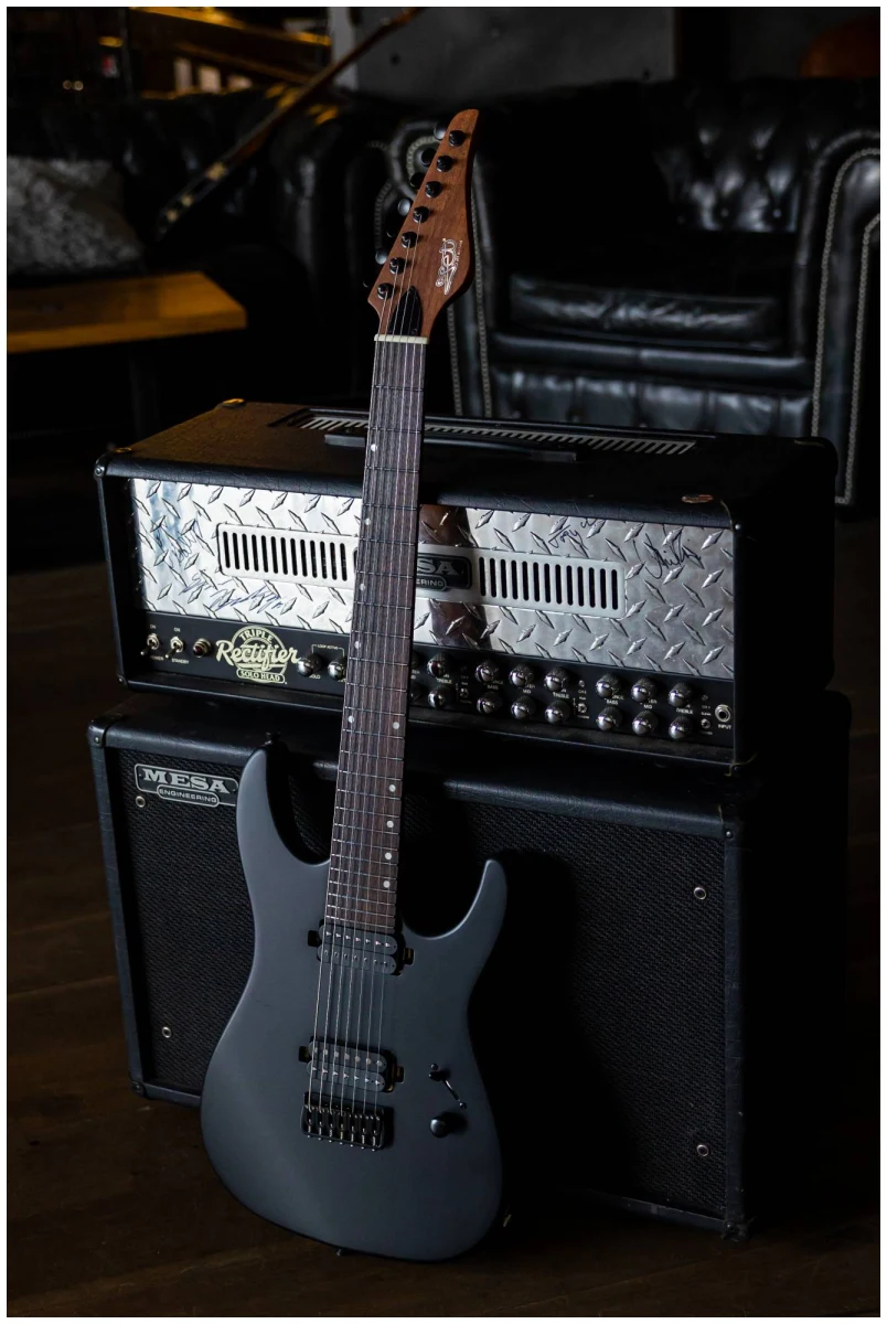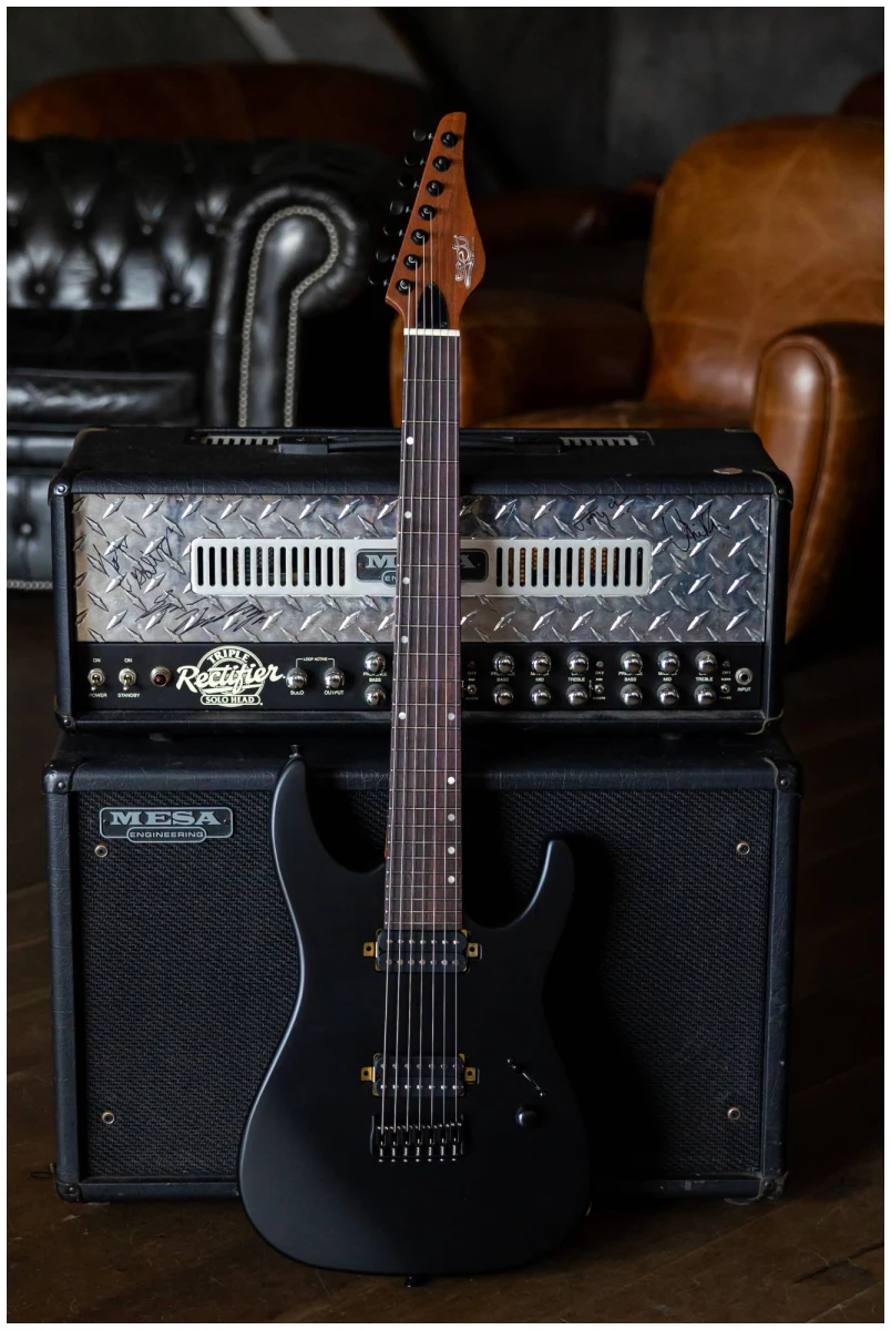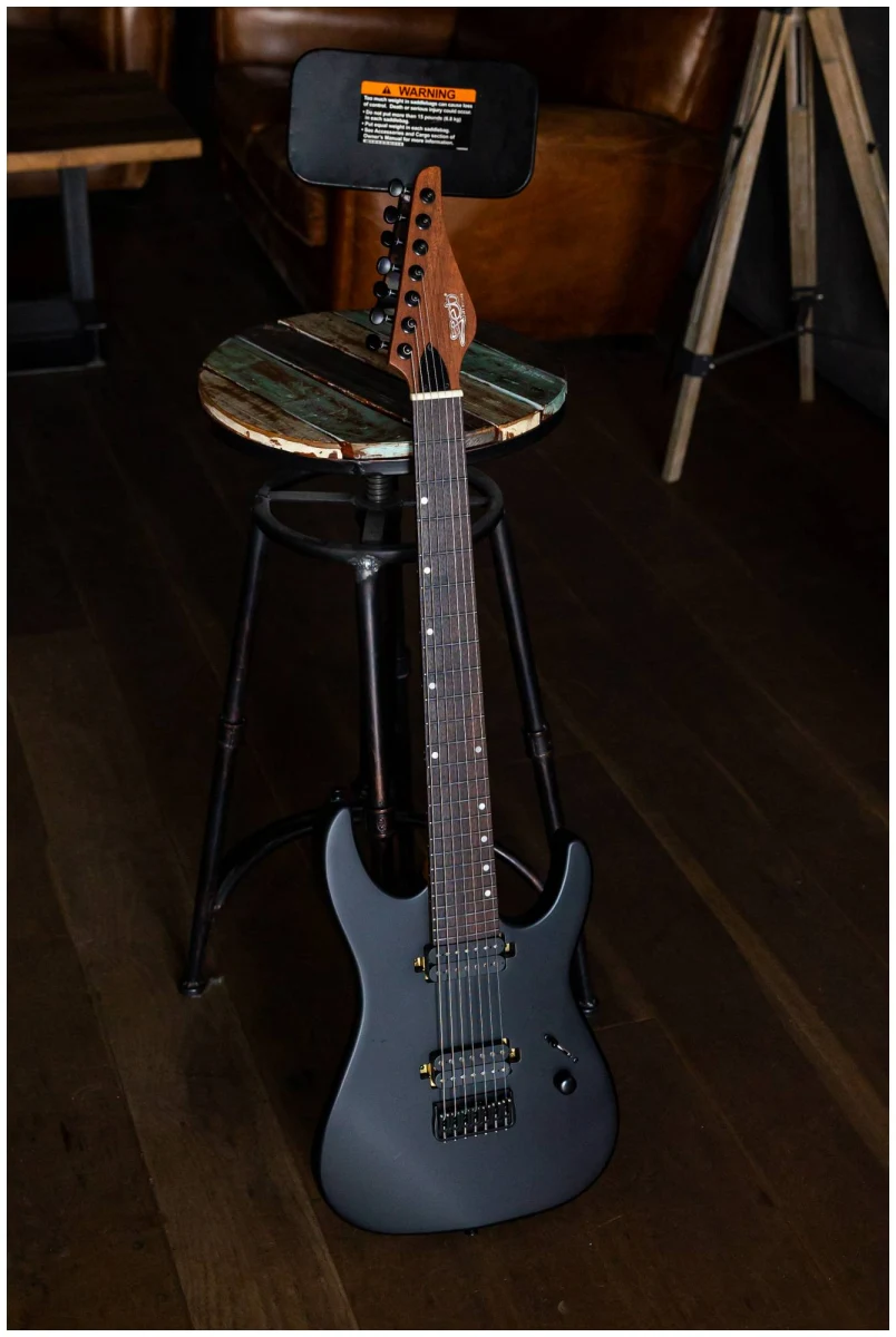 Выполненная в гладком черном цвете, эта гитара излучает темное, властное присутствие на сцене, в то время как эргономичная форма корпуса и расширенный диапазон делают ее идеальным выбором для музыкантов, желающих расширить границы своей игры.