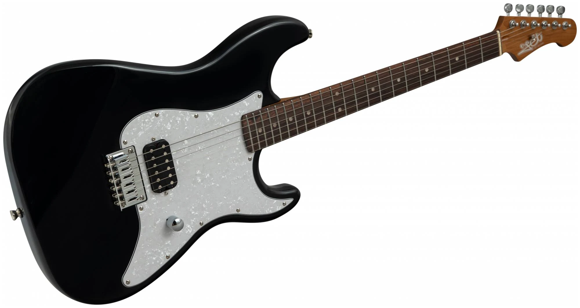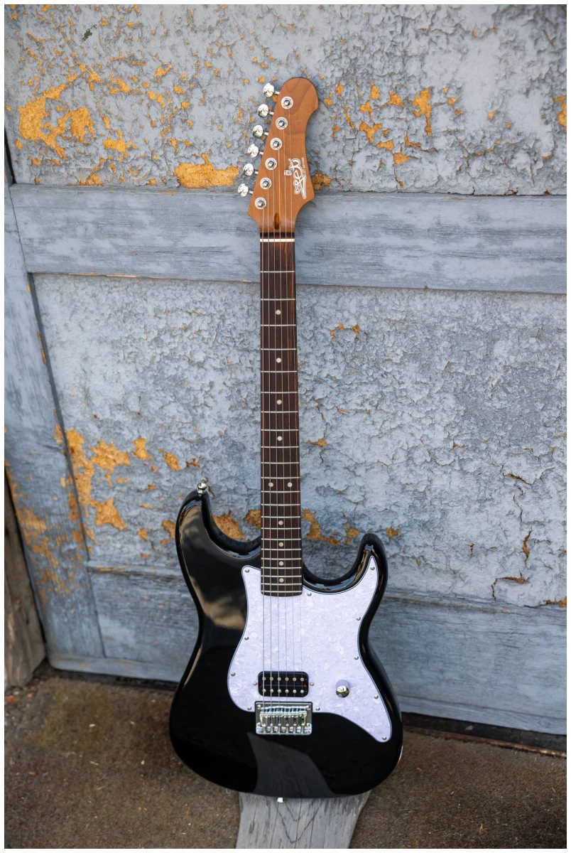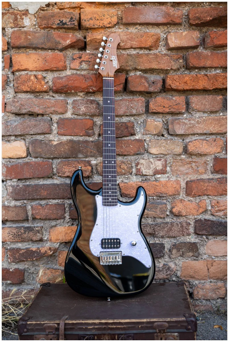 Накладка на гриф выполнена из палисандра, фурнитура хром, фиксированное тремоло, 1 хамбакер черного цвета, перламутровая накладка и металлическая ручка управления – в JET JS-400 HT BK все продумано до мелочей.