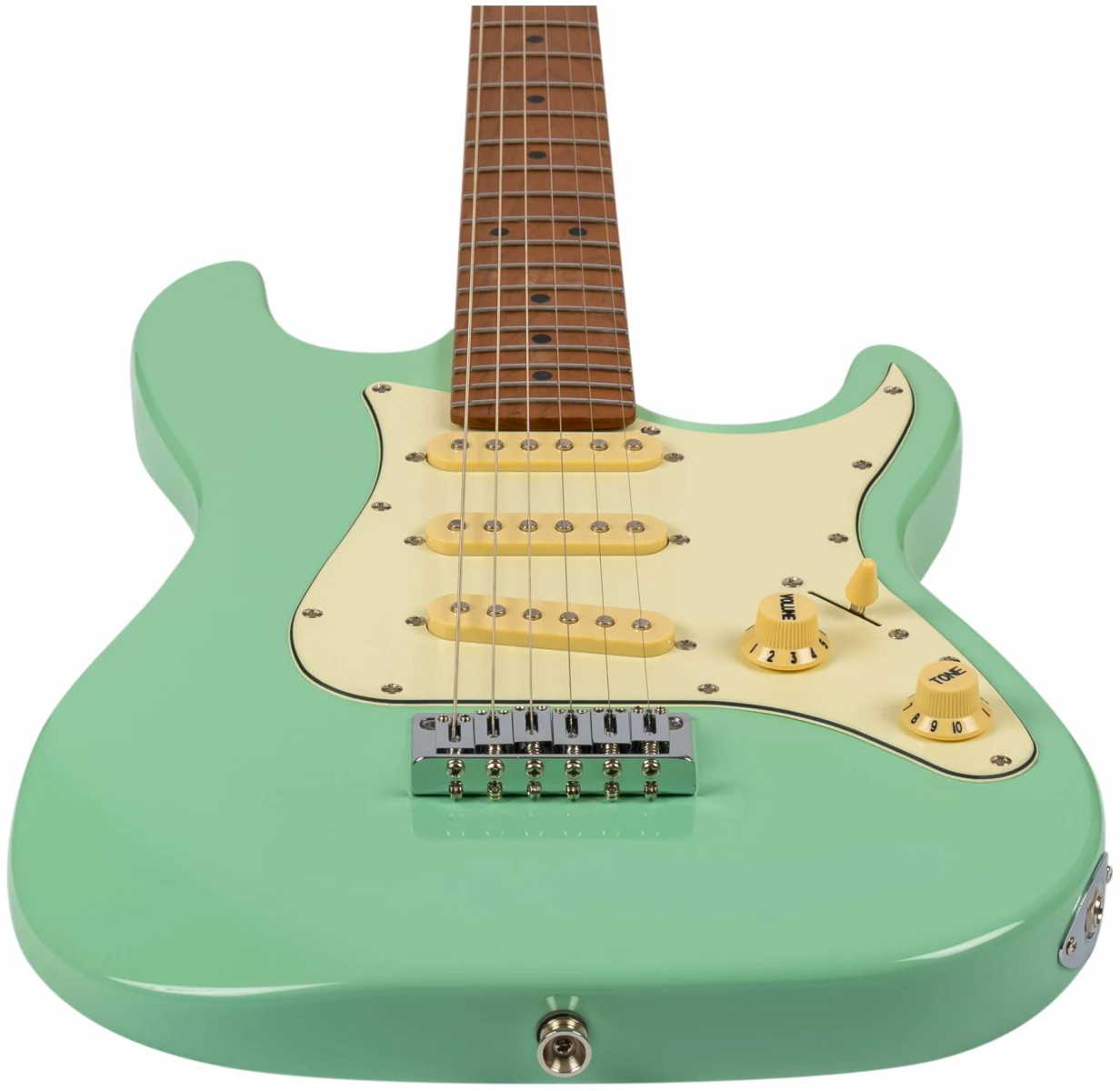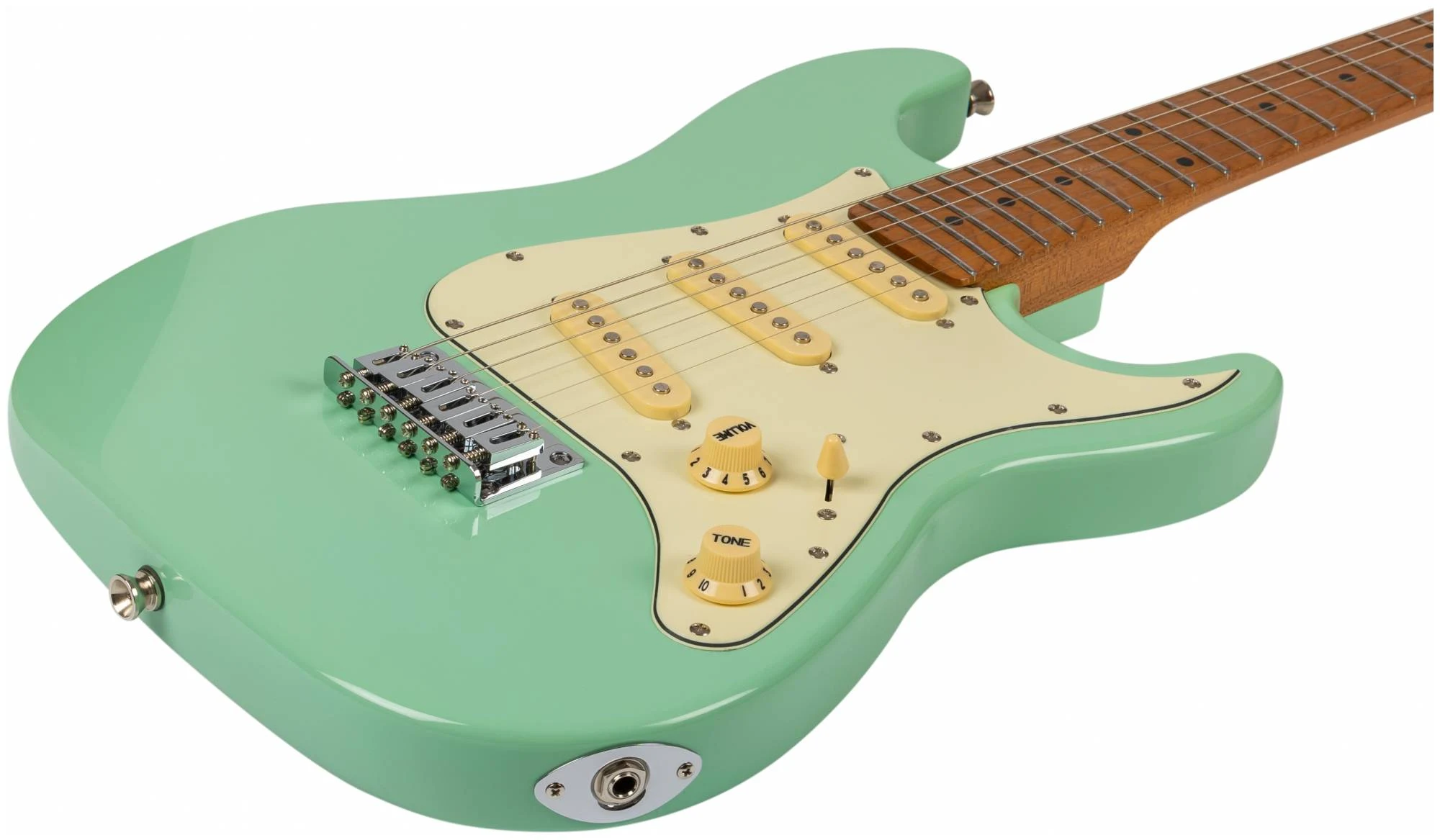 JET JS-300 это инструмент в классической и самой популярной форме корпуса – Стратокастер. У инструментов JS-300 профиль грифа – Modern C. Это наиболее распространенный современный профиль грифа, у таких грифов удобный овальный профиль, который подходит для большинства стилей игры.