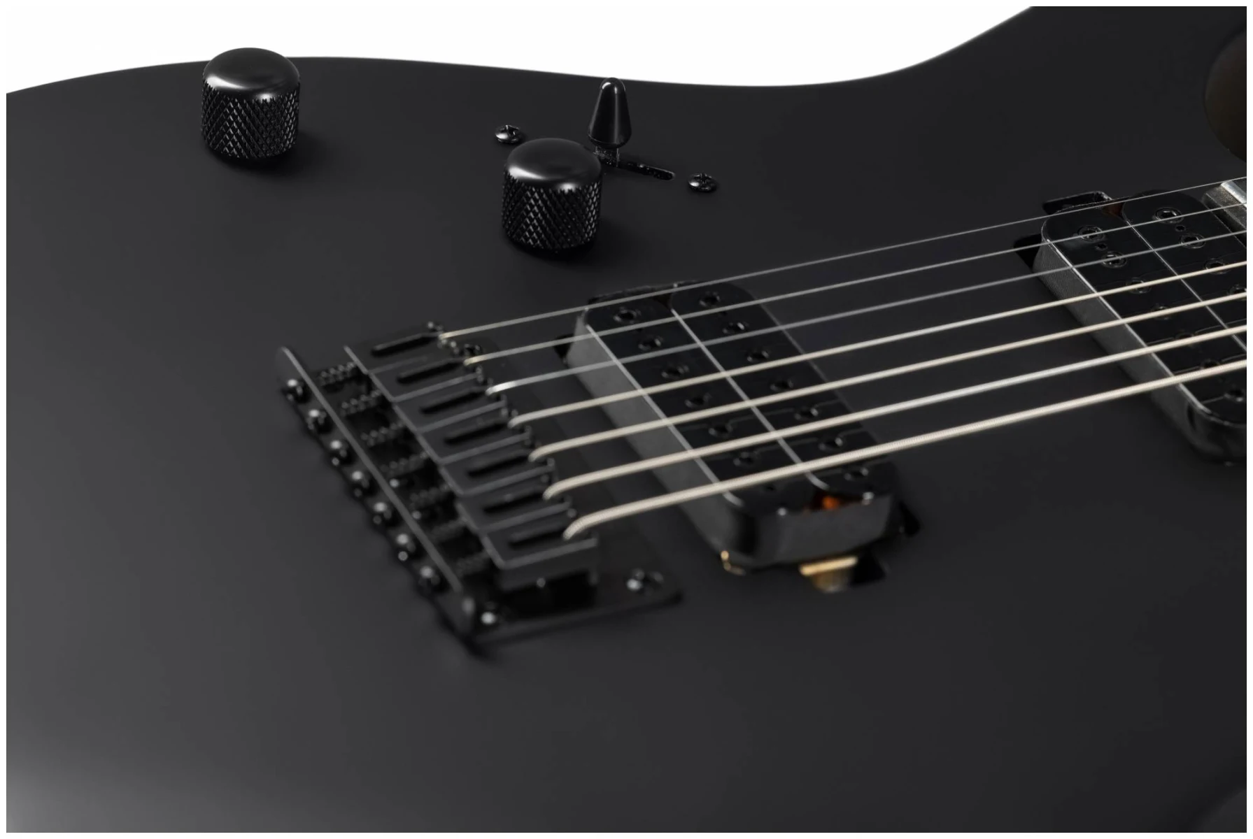 Накладка грифа из искусственного черного дерева (Ebony Tech) с 24 jumbo ладами обеспечивает плавную и отзывчивую игру, идеально подходящую для продвинутых и сложных техник.