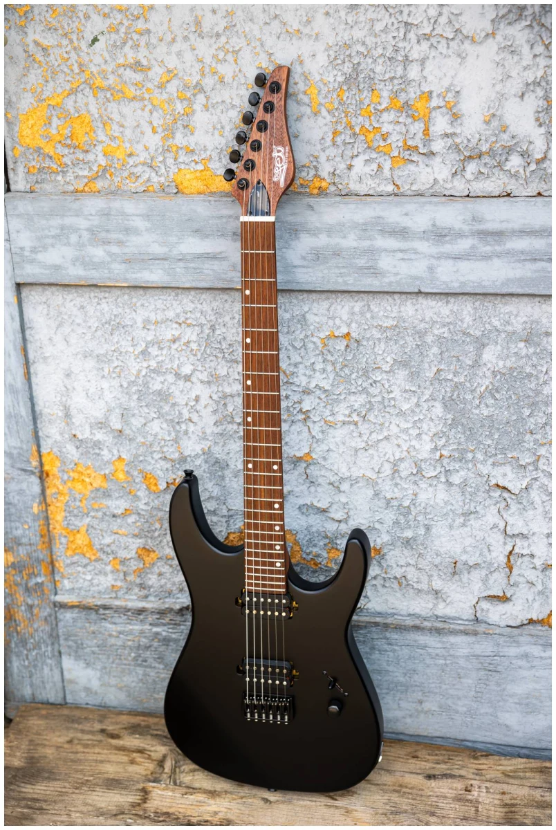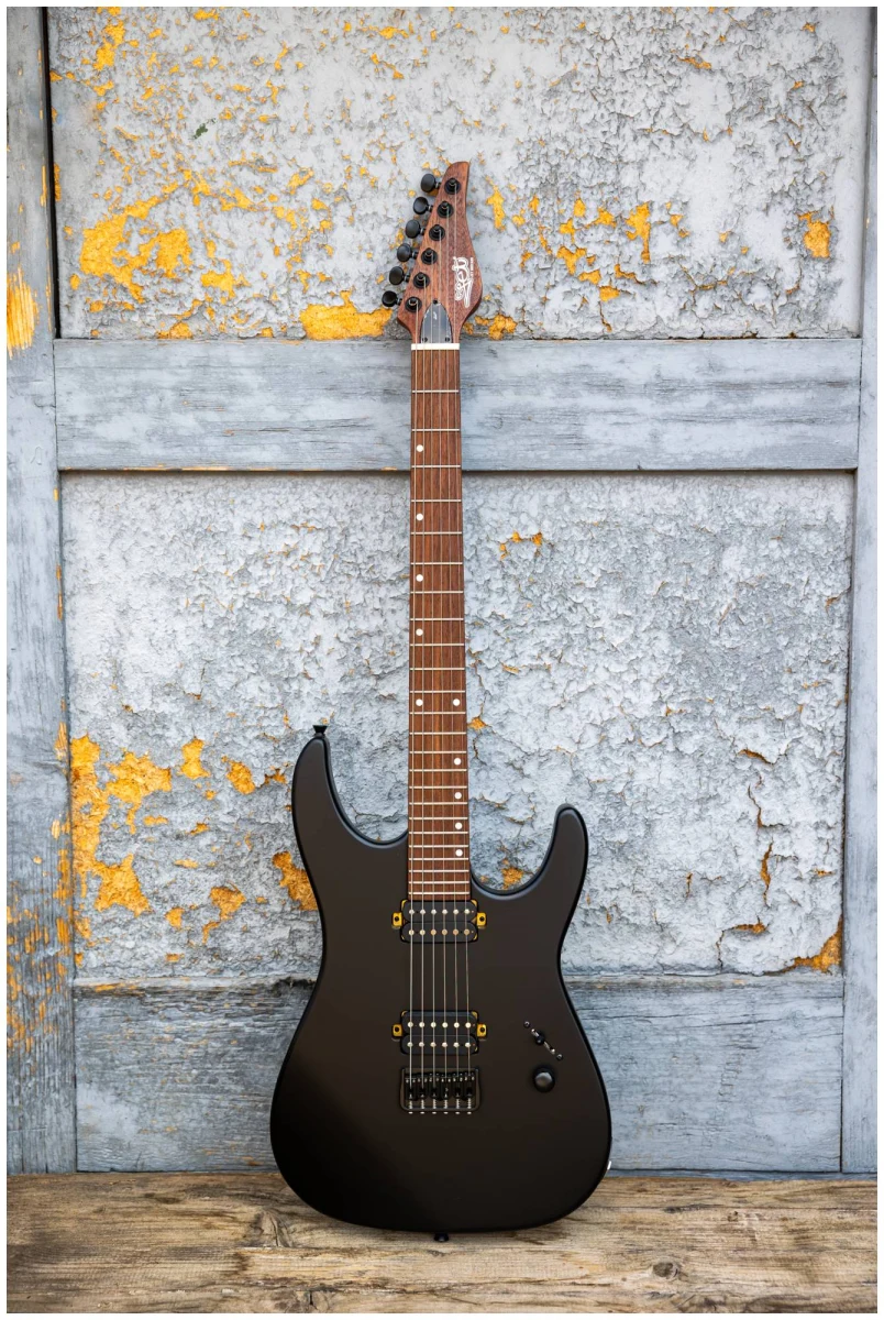 JET JS-501 BK – инструмент c двумя хамбакерами для тех, кто ищет более тяжелый, жесткий звук. Суперстрат из красного дерева с отделкой черного матового цвета с открытыми порами.
