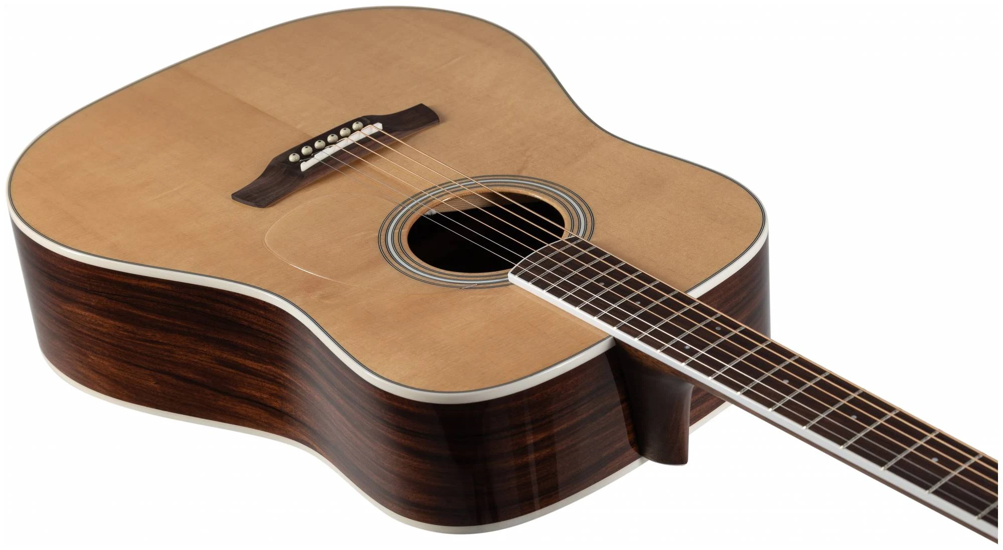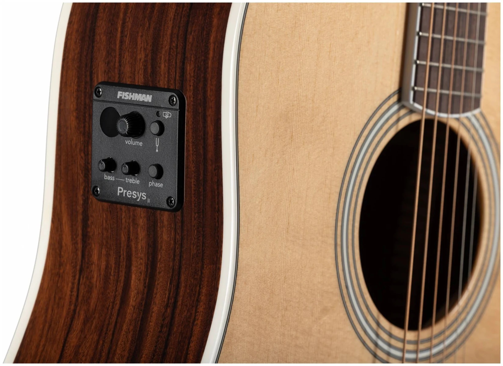 Это самая изысканная линейка бренда, созданная для тех, кто ищет инструмент премиум‑класса. Верхняя дека из ситхинской ели высшей категории, нижняя дека и обечайки из пау ферро — древесины, которая делает каждую гитару уникальной благодаря неповторимому рисунку.
