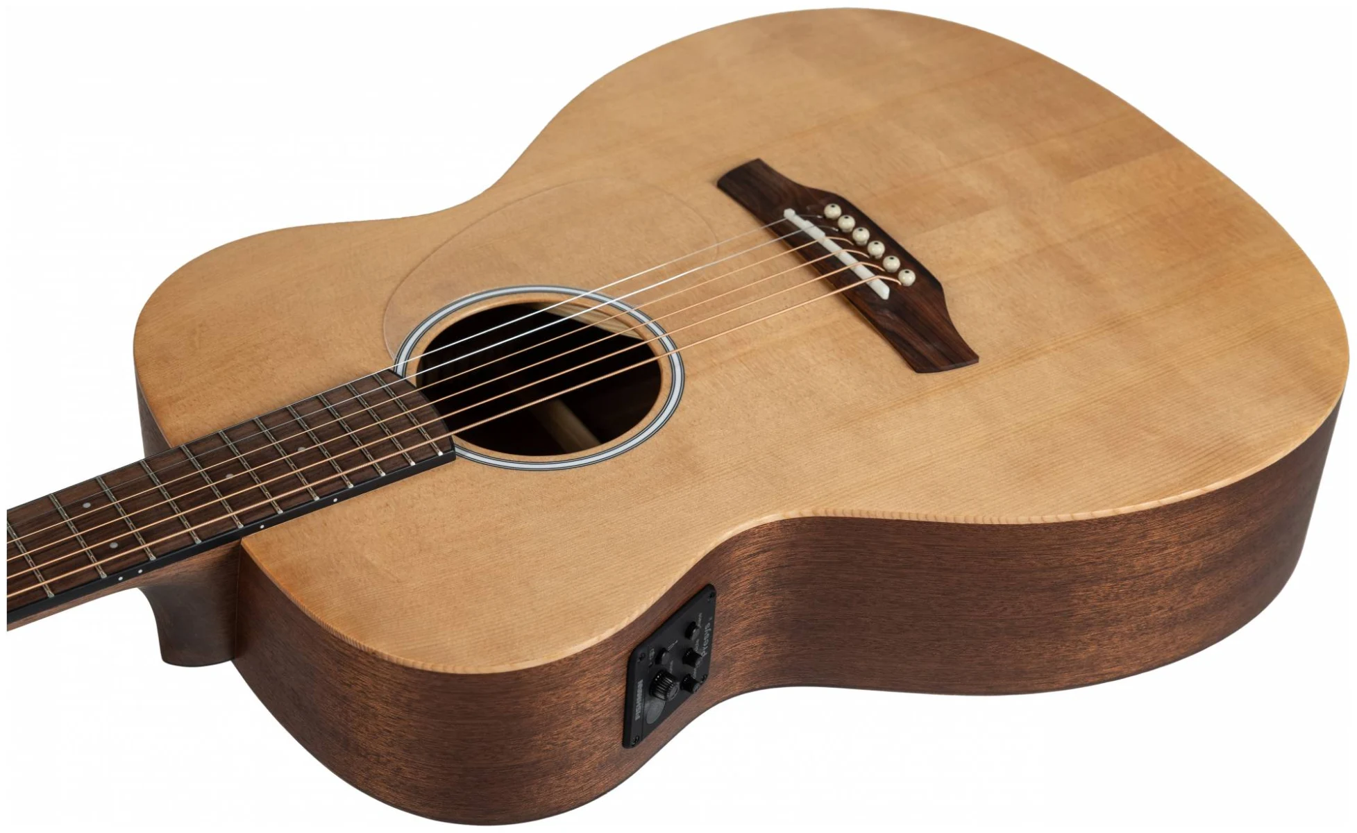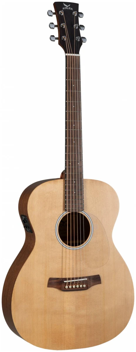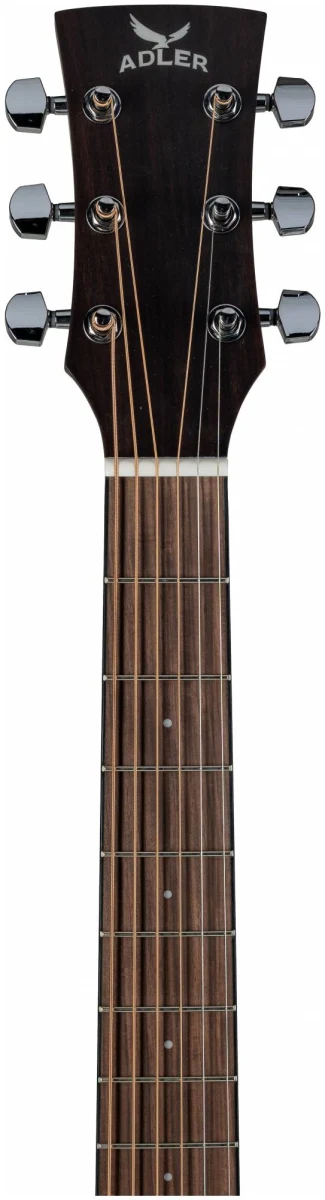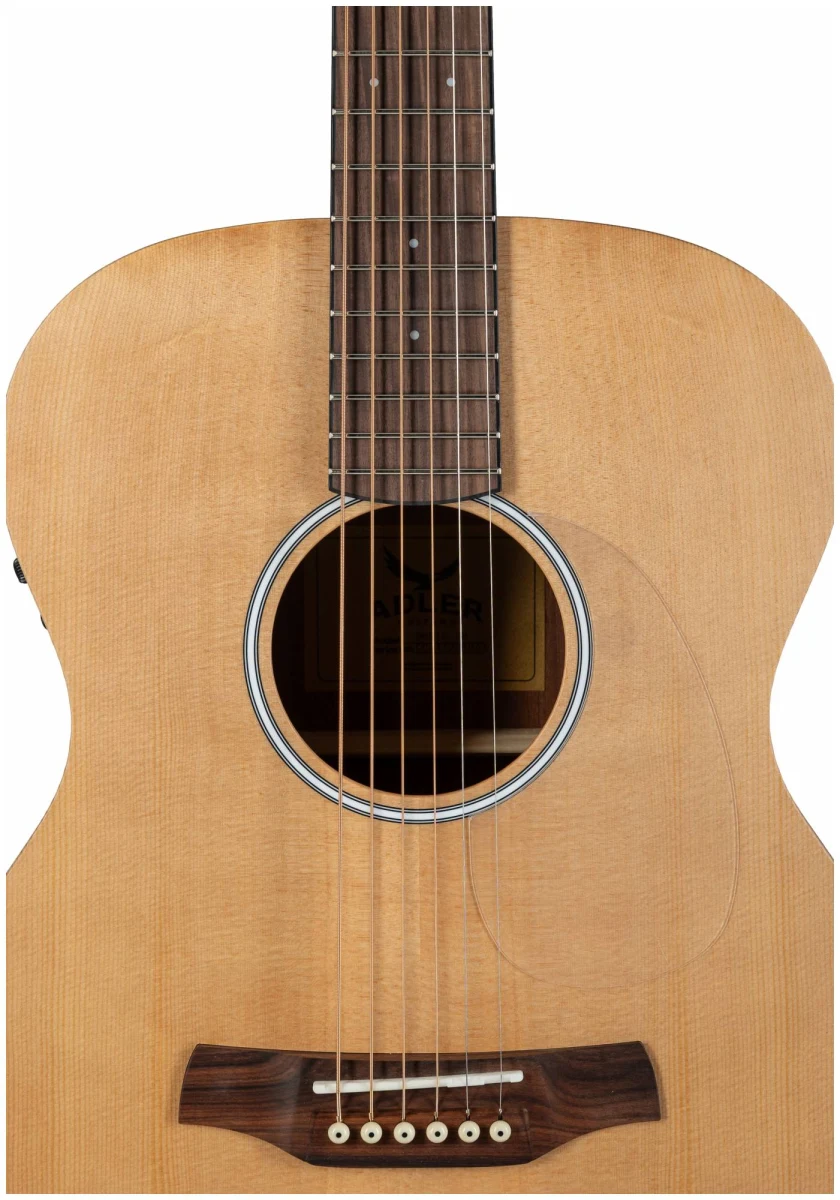 Серия 10 — это базовая линейка от ADLER с массивной верхней декой из ситхинской ели и корпусом из красного дерева. Минималистичный дизайн без лишних деталей: прозрачный пикгард, хромированные литые колки, простая минималистичная розетка, отделка оpen pore.