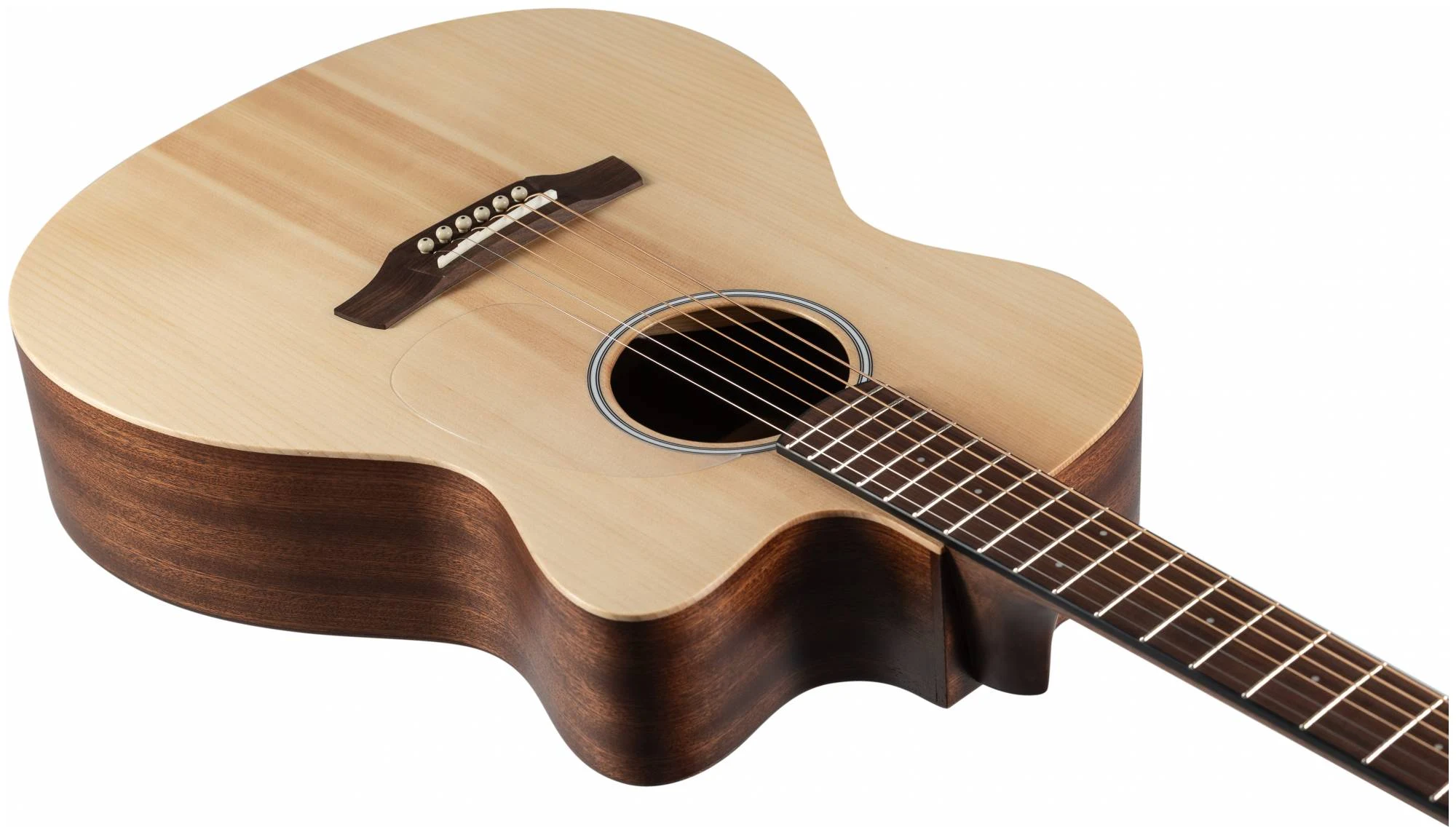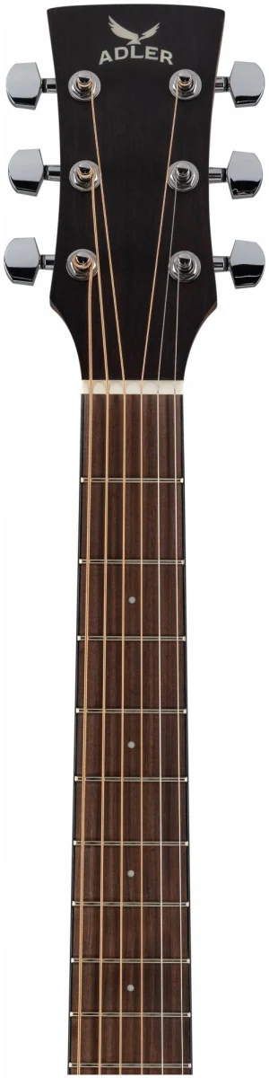 Серия 10 — это базовая линейка от ADLER с массивной верхней декой из ситхинской ели и корпусом из красного дерева. Минималистичный дизайн без лишних деталей: прозрачный пикгард, хромированные литые колки, простая минималистичная розетка, отделка оpen pore.