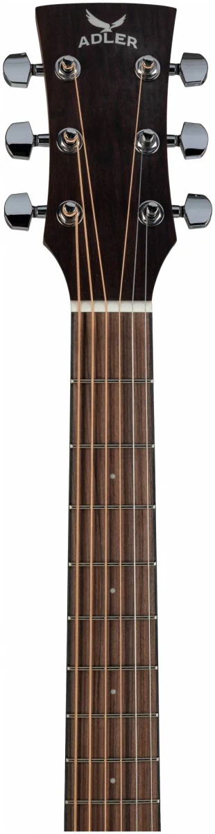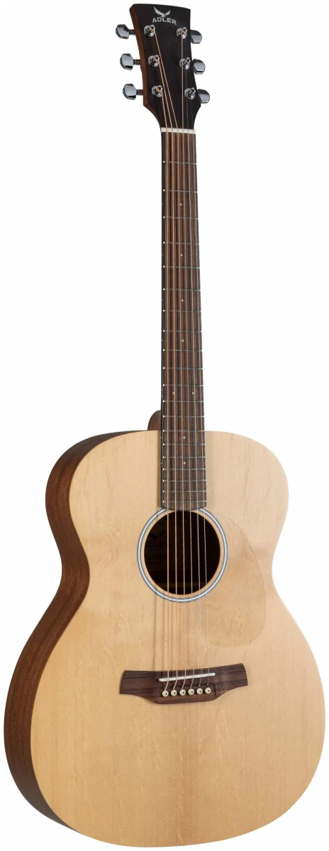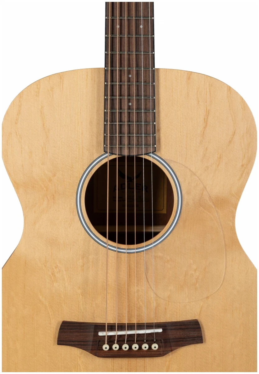 Серия 10 — это базовая линейка от ADLER с массивной верхней декой из ситхинской ели и корпусом из красного дерева. Минималистичный дизайн без лишних деталей: прозрачный пикгард, хромированные литые колки, простая минималистичная розетка, отделка оpen pore.