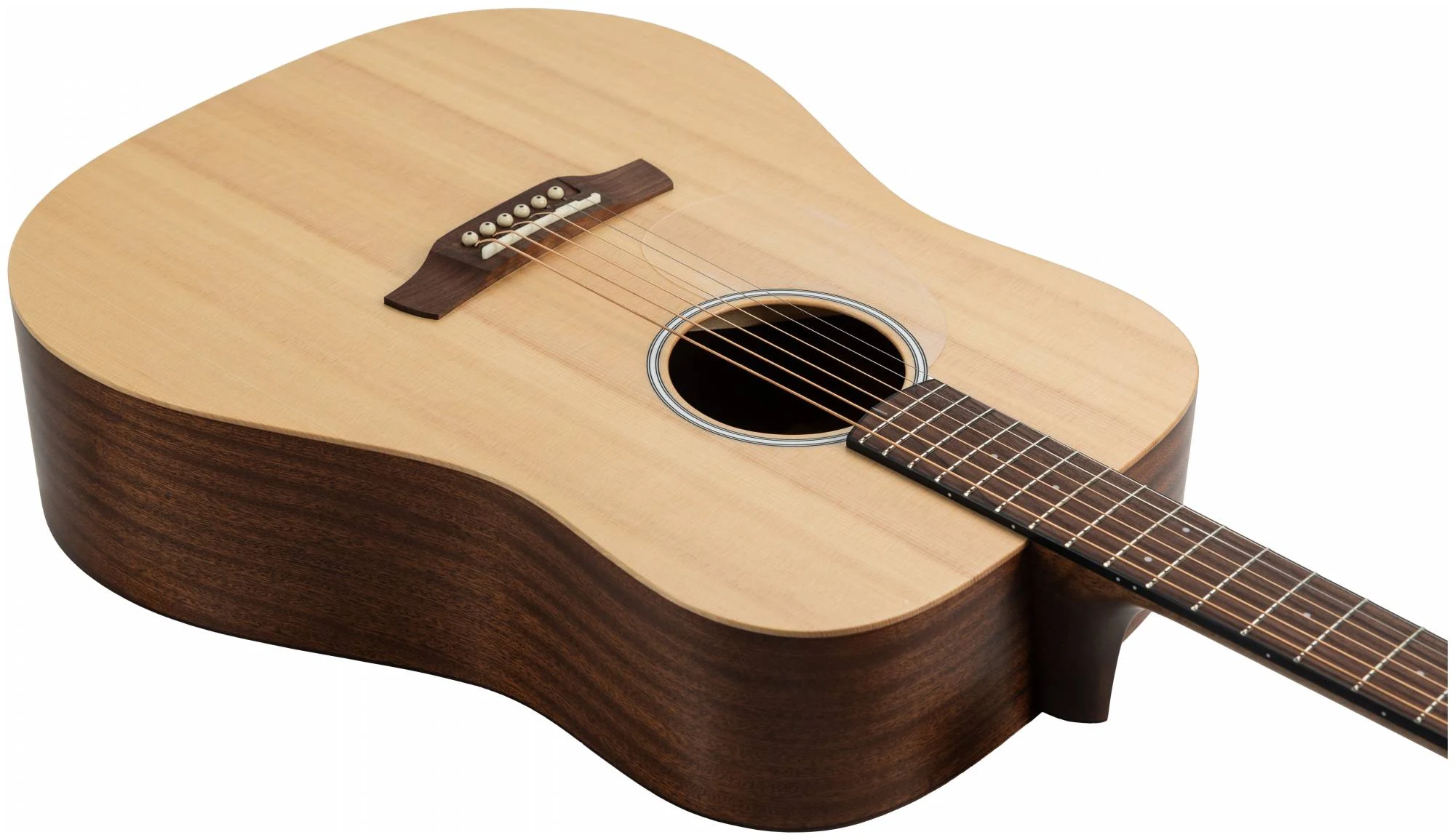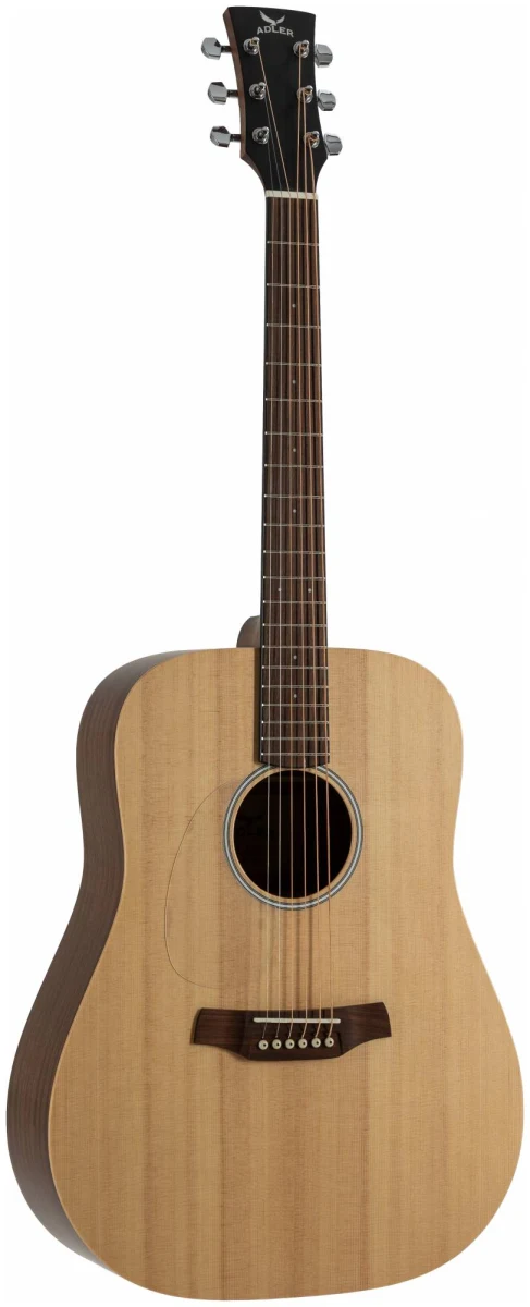 Серия 10 — это базовая линейка от ADLER с массивной верхней декой из ситхинской ели и корпусом из красного дерева. Минималистичный дизайн без лишних деталей: прозрачный пикгард, хромированные литые колки, простая минималистичная розетка, отделка оpen pore.
