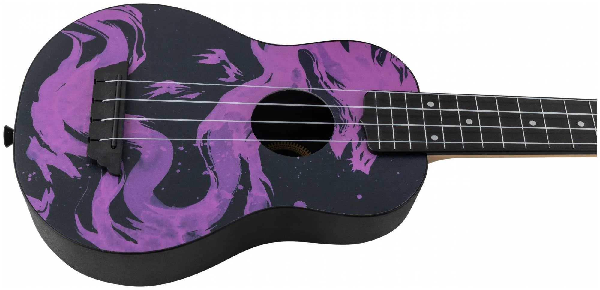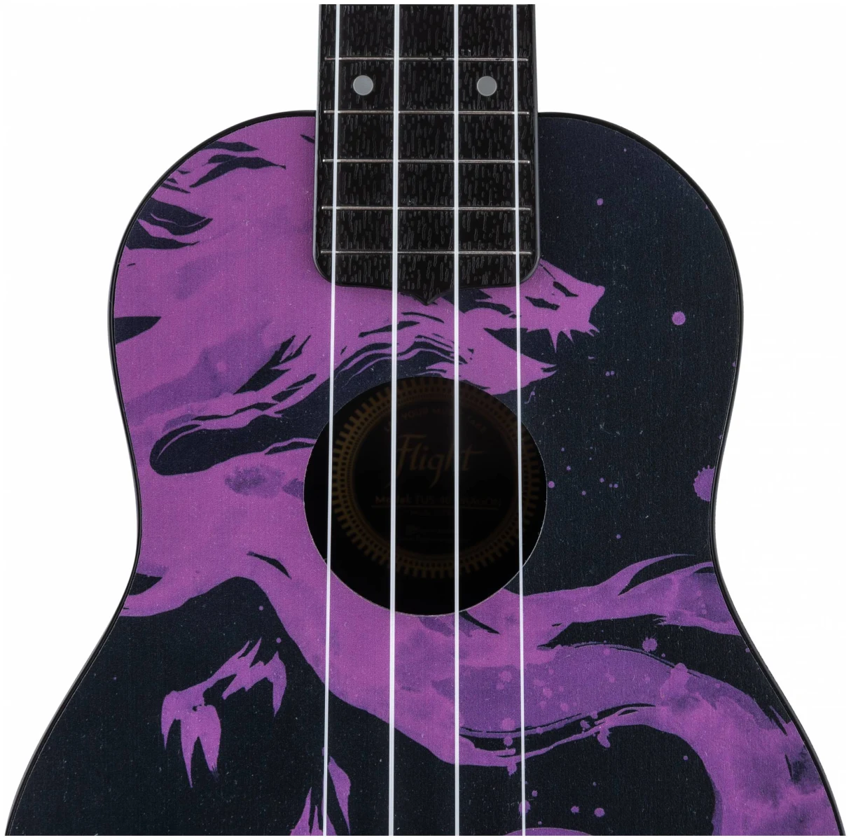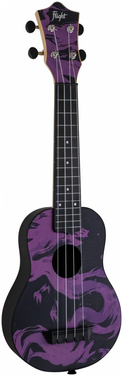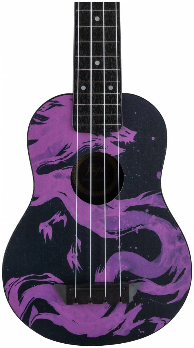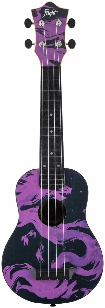 Мистический фиолетово‑чёрный принт с изображением дракона как будто создан для тех, кто познал мудрость, печаль и тайны восточной философии. С укулеле FLIGHT TUS-40 DRAGON так легко оставаться наедине с собой, вдали от городской суеты и писать песни с глубоким смыслом.