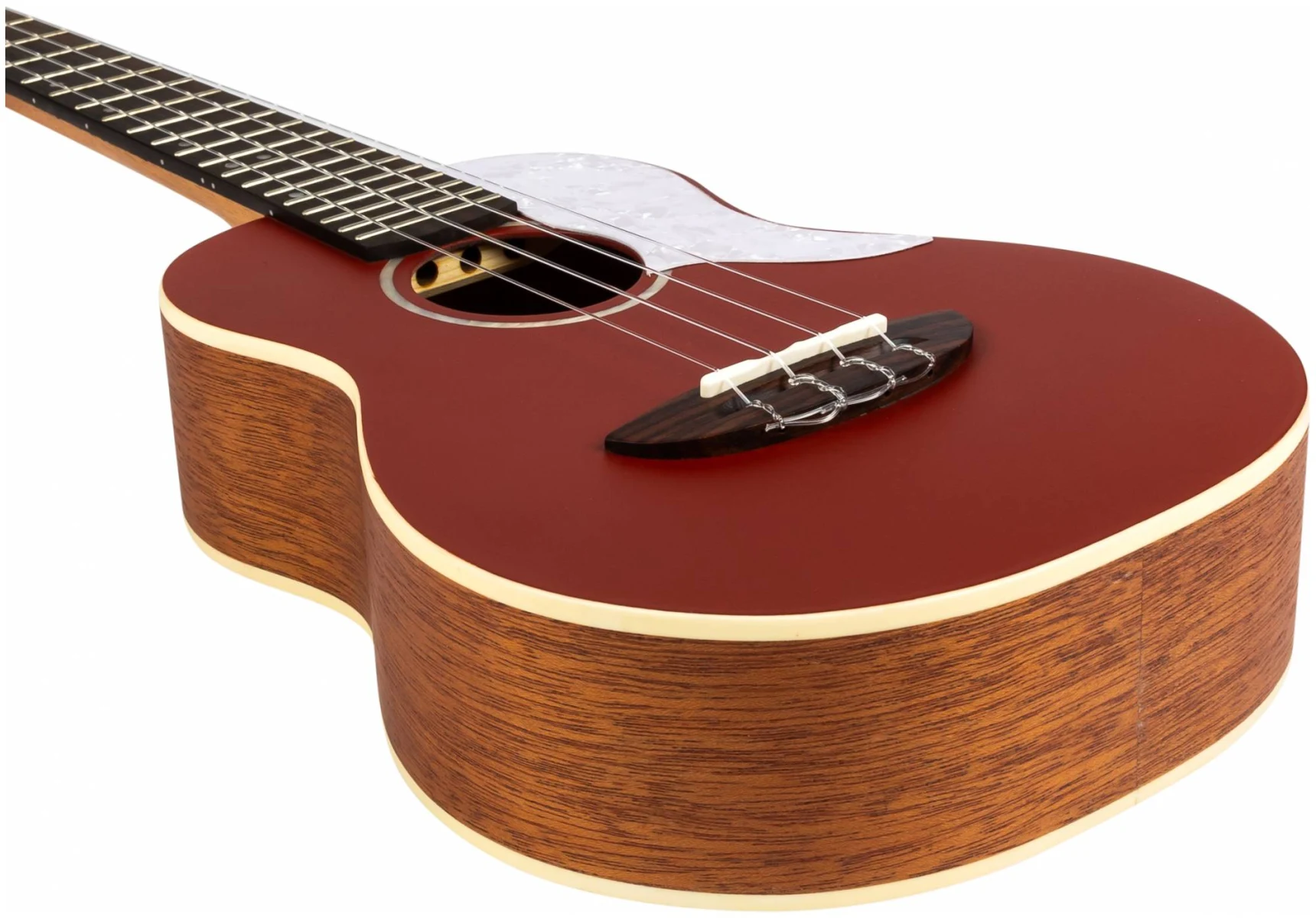 Верхняя дека FLIGHT IRIS Concert RD сделана из массива ели и выкрашена в красный цвет, обеспечивая звук, который отлично подходит для живых выступлений и студийных записей. Верхняя дека из массива ели усилена корпусом и обечайкой из ламината красного дерева, создавая не только яркое и звонкое звучание, но и добавляя в него теплоту и округлость.