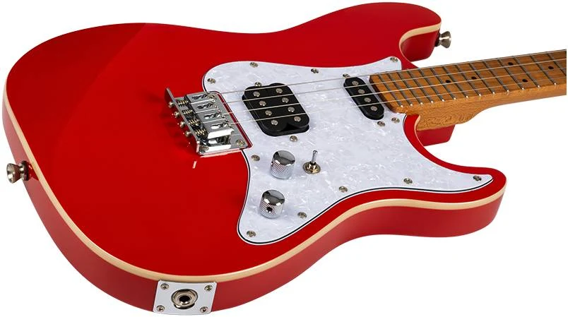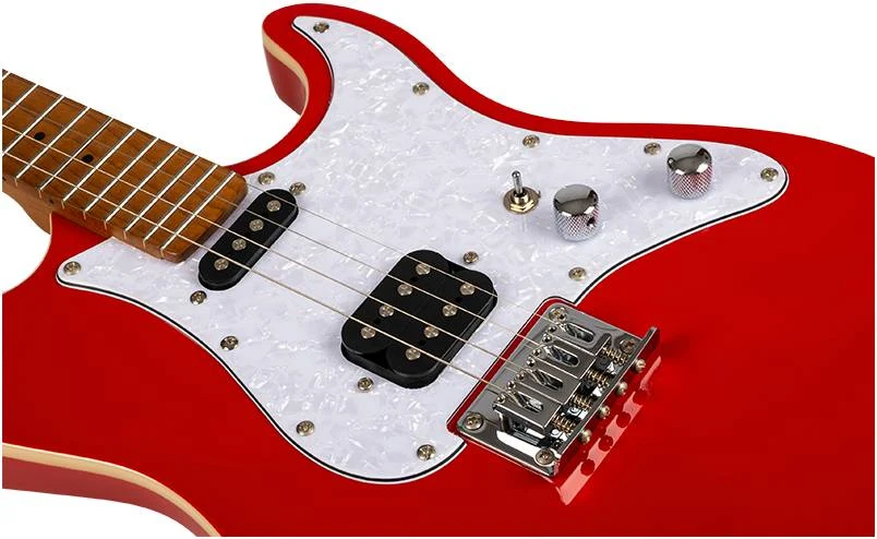 Гриф из запеченного клена со стратоподобной головкой с колками в линию, окантовка из ABS-пластика обеспечивают гладкую и удобную игру. Фиксированный бридж “hardtail” и сквозная система струн обеспечивают стабильную работу и отличный сустейн. Хамбакер в бриджевой позиции, сингл в нековой позиции – широкий диапазон тембров для любого музыкального стиля. А благодаря хромированной фурнитуре и простым в использовании элементам управления громкостью и тембром у вас будет полный контроль над звуком.
