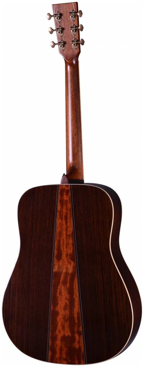 Верхняя дека гитары CRAFTER SungEum D-50th VVS выполнена из массива термически обработанной Ситхинской ели VVS (Sitka Spruce). Эта порода древесины особенно ценится в производстве музыкальных инструментов за её однородную структуру, которая обеспечивает хороший резонанс и прозрачный звук. На нижней деке используются 3 части древесины из массива индийского палисандра и африканского бубинга, что отличаются глубоким звучанием.