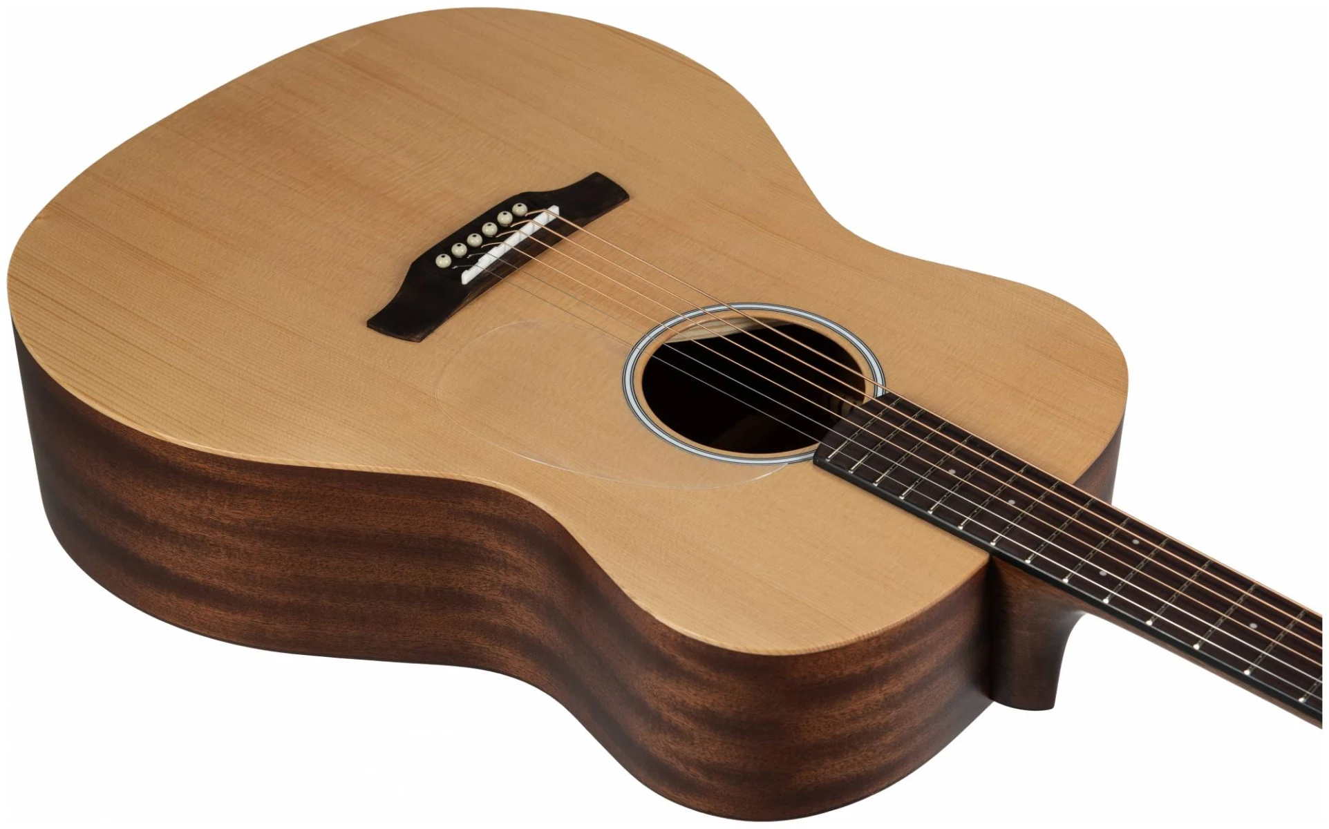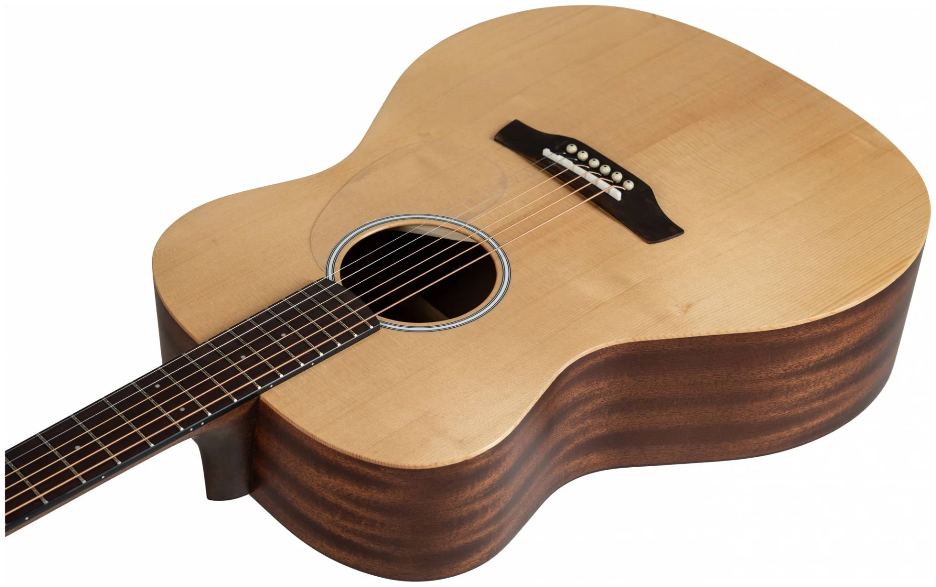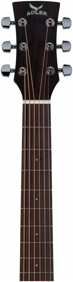 Серия 10 — это базовая линейка от ADLER с массивной верхней декой из ситхинской ели и корпусом из красного дерева. Минималистичный дизайн без лишних деталей: прозрачный пикгард, хромированные литые колки, простая минималистичная розетка, отделка оpen pore.