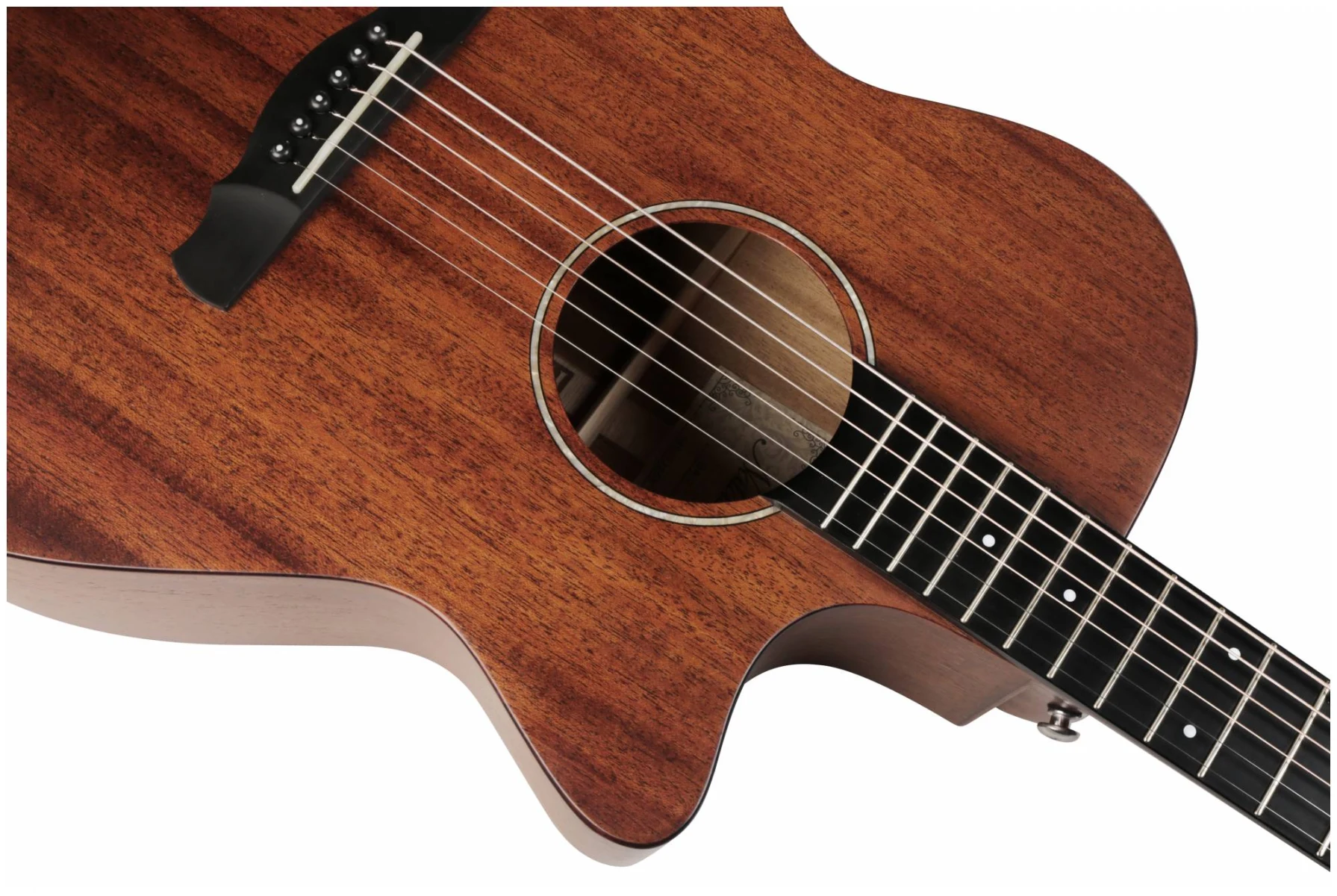 Гитара выполнена из массива красного дерева, что обеспечивает богатое и теплое звучание. Использование массива красного дерева придает инструменту устойчивость к изменениям влажности и температуры. Обечайка из ламината красного дерева делает гитару более доступной по цене, сохраняя при этом высокое качество звучания.