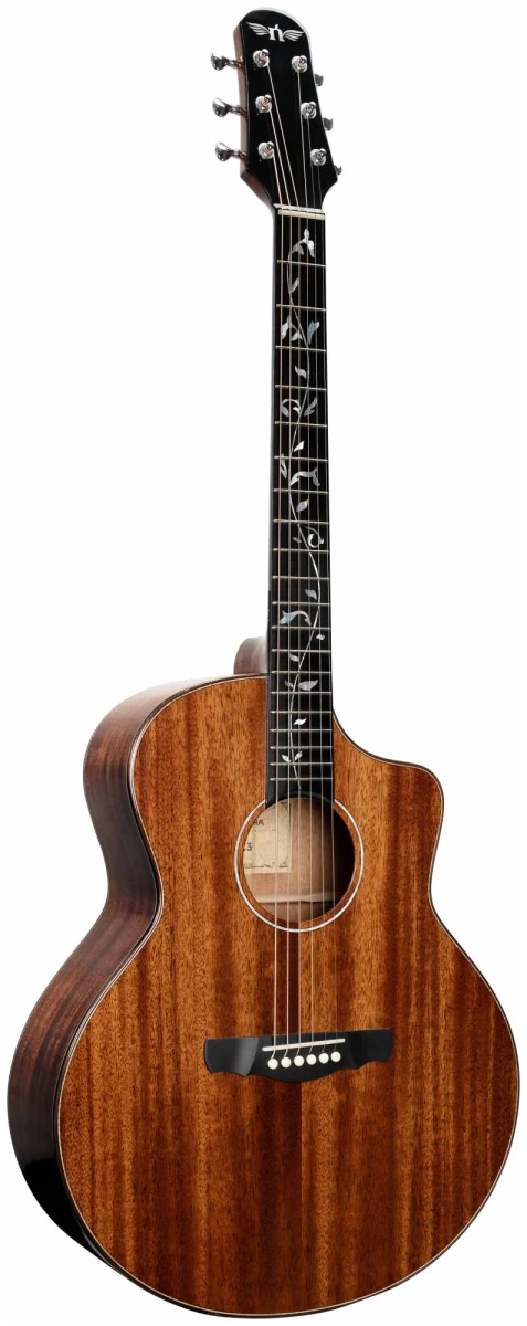 Натуральное покрытие подчеркивает естественную красоту древесины и защищает поверхность. Гриф из красного дерева обеспечивает комфортное ощущение при игре и повышенную долговечность инструмента. Эта гитара идеально подходит как для начинающих, так и для профессиональных музыкантов, ценящих качество и богатство звучания.