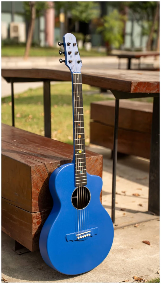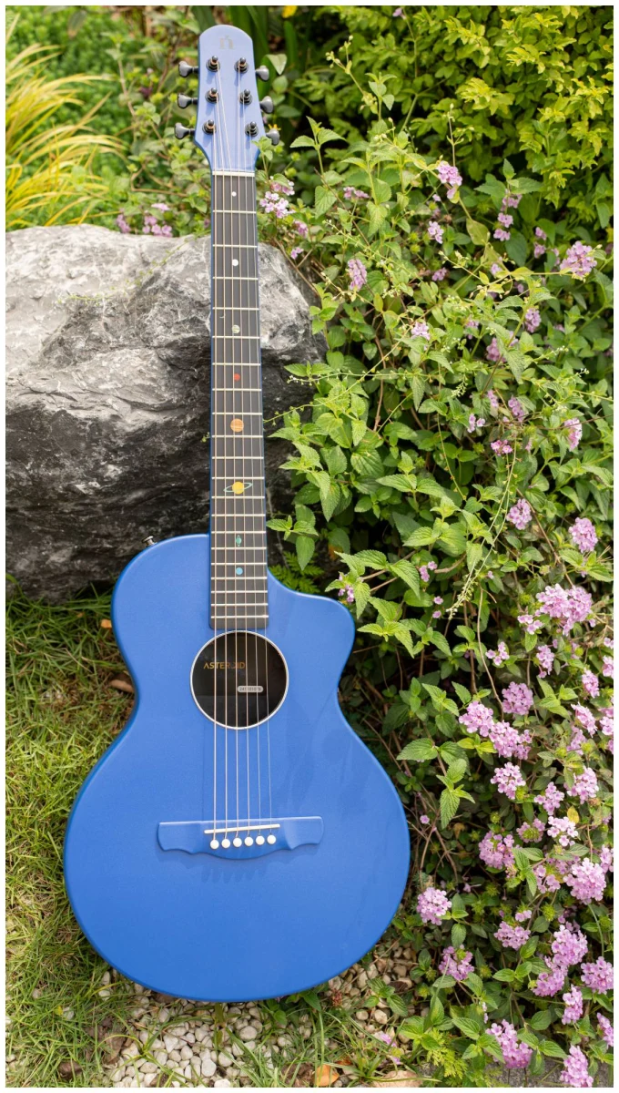 Эта гитара про прочность, стиль и исключительный звук. Инструменты серии Asteroid изготовлены полностью из корбонового композита, что считается прочнее и долговечнее дерева. Оно не подвержено деформации при различных скачках температуры и не портится со временем. Именно эти характеристики и легкий вес позволяют гитарам быть идеальным вариантом для любых путешествий: будь это снежные горы, пляжи или даже пустыни.