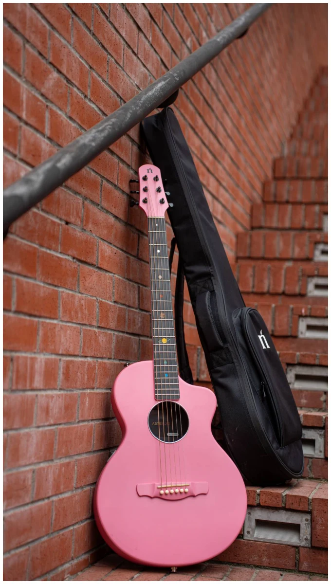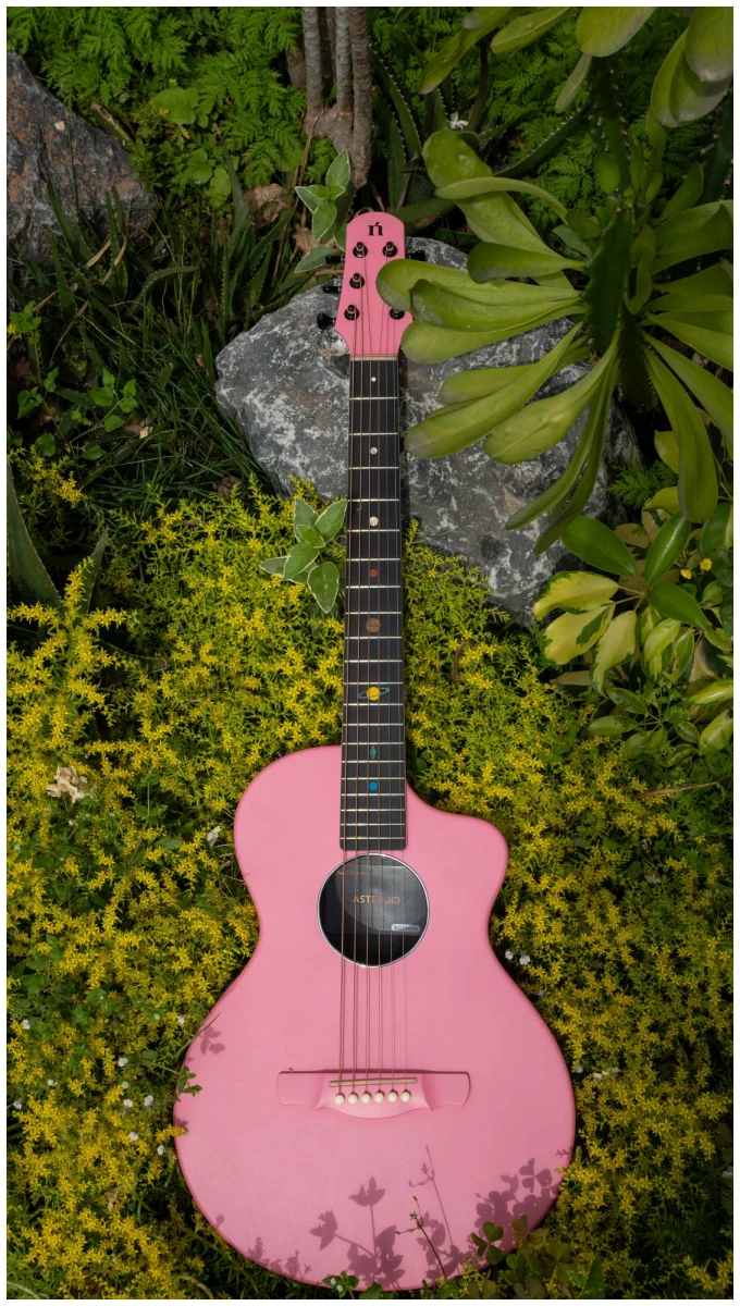 Эта гитара про прочность, стиль и исключительный звук. Инструменты серии Asteroid изготовлены полностью из корбонового композита, что считается прочнее и долговечнее дерева. Оно не подвержено деформации при различных скачках температуры и не портится со временем. Именно эти характеристики и легкий вес позволяют гитарам быть идеальным вариантом для любых путешествий: будь это снежные горы, пляжи или даже пустыни.