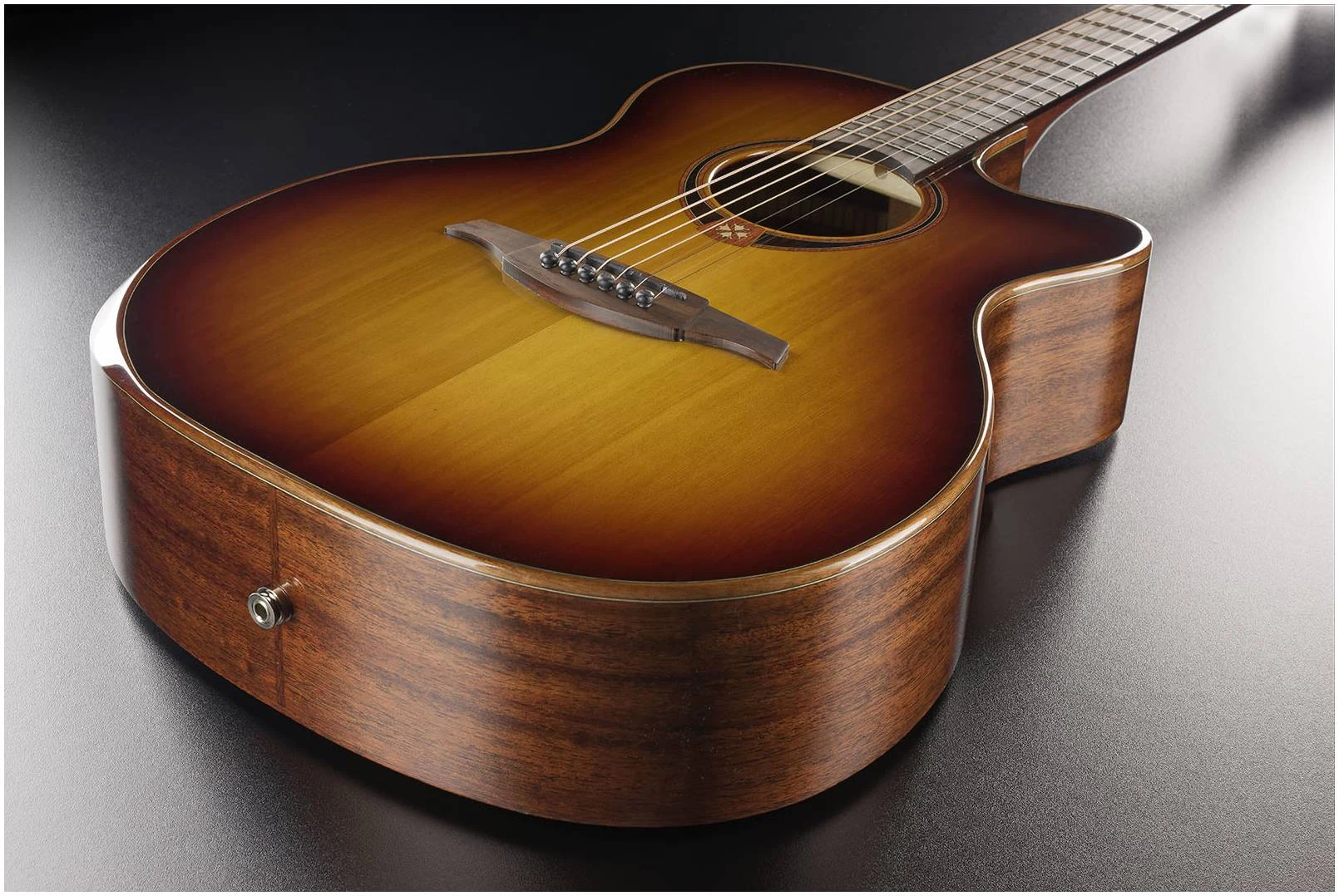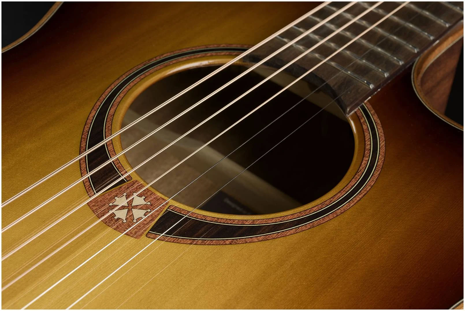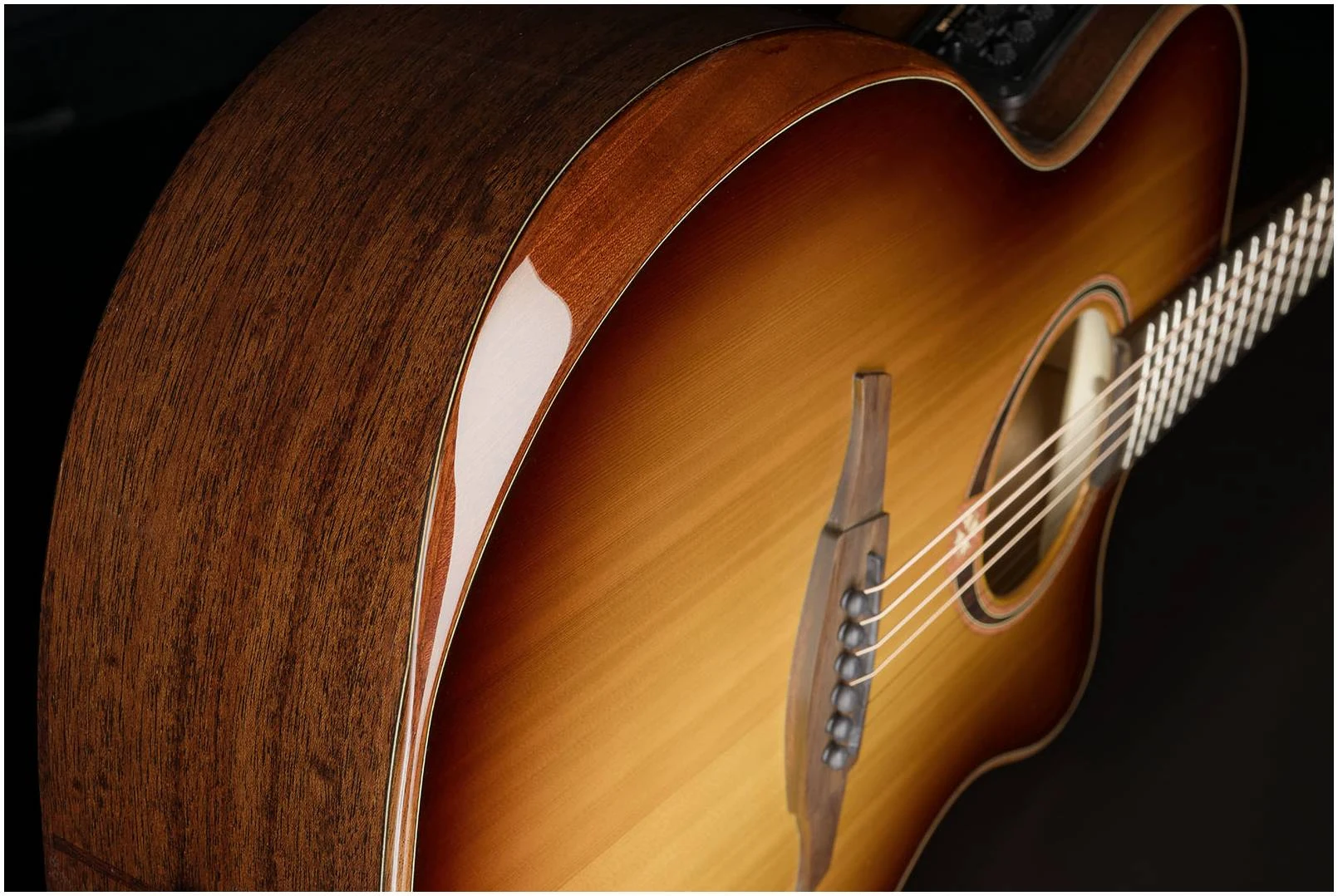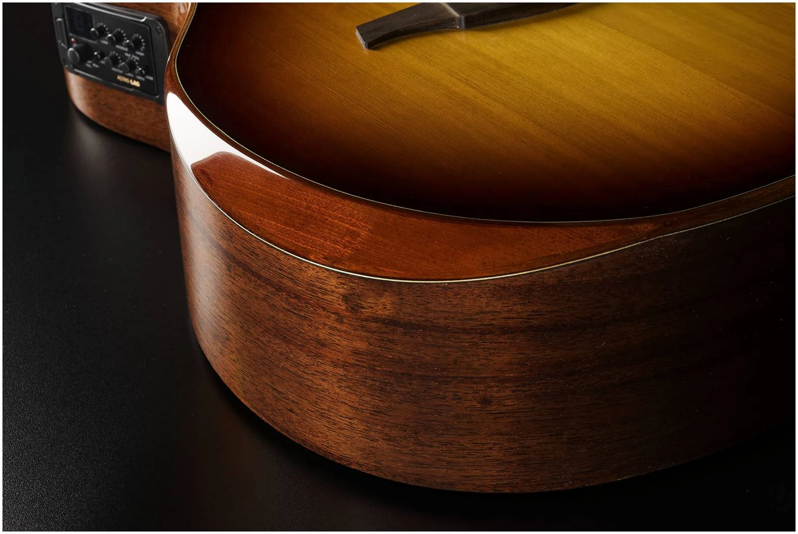 Гитара T118ABCE со скосом смягчает угол между верхней декой и обечайкой под правой рукой, обеспечивая оптимальный комфорт и позволяя играть часами. Модель представлена в цвете санберст.
