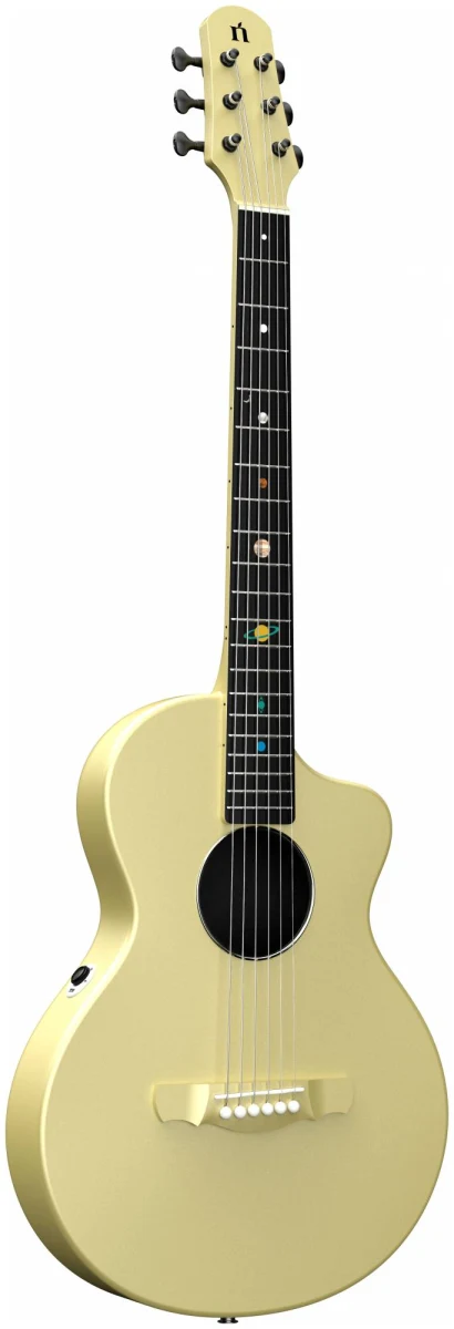 Эта гитара про прочность, стиль и исключительный звук. Инструменты серии Asteroid изготовлены полностью из корбонового композита, что считается прочнее и долговечнее дерева. Оно не подвержено деформации при различных скачках температуры и не портится со временем. Именно эти характеристики и легкий вес позволяют гитарам быть идеальным вариантом для любых путешествий: будь это снежные горы, пляжи или даже пустыни.
