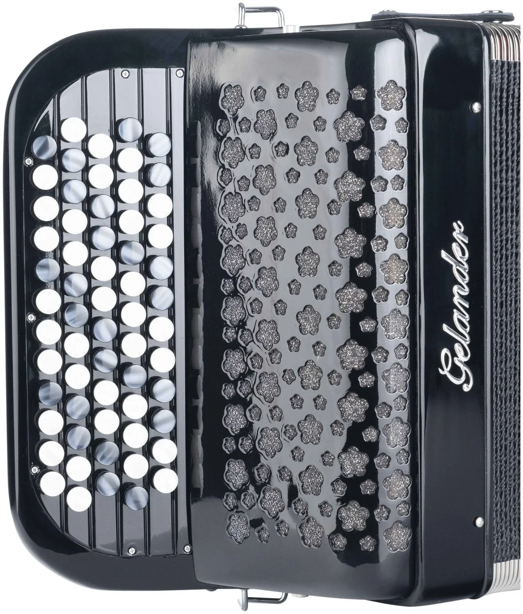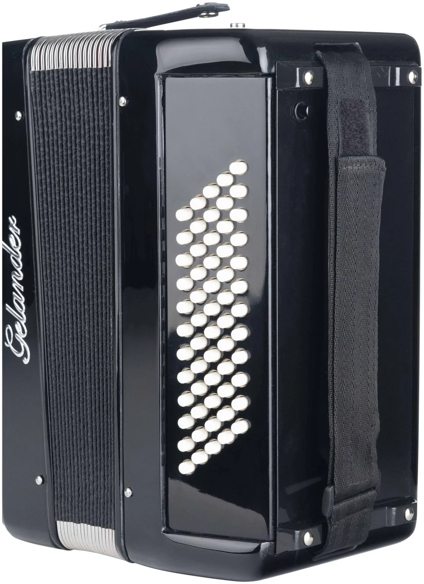 Ученический баян GELANDER GH5060B BK черного цвета с готовым аккомпанементом. В комплекте чехол и регулируемые ремни, которые позволяют настроить инструмент под индивидуальные параметры музыканта.