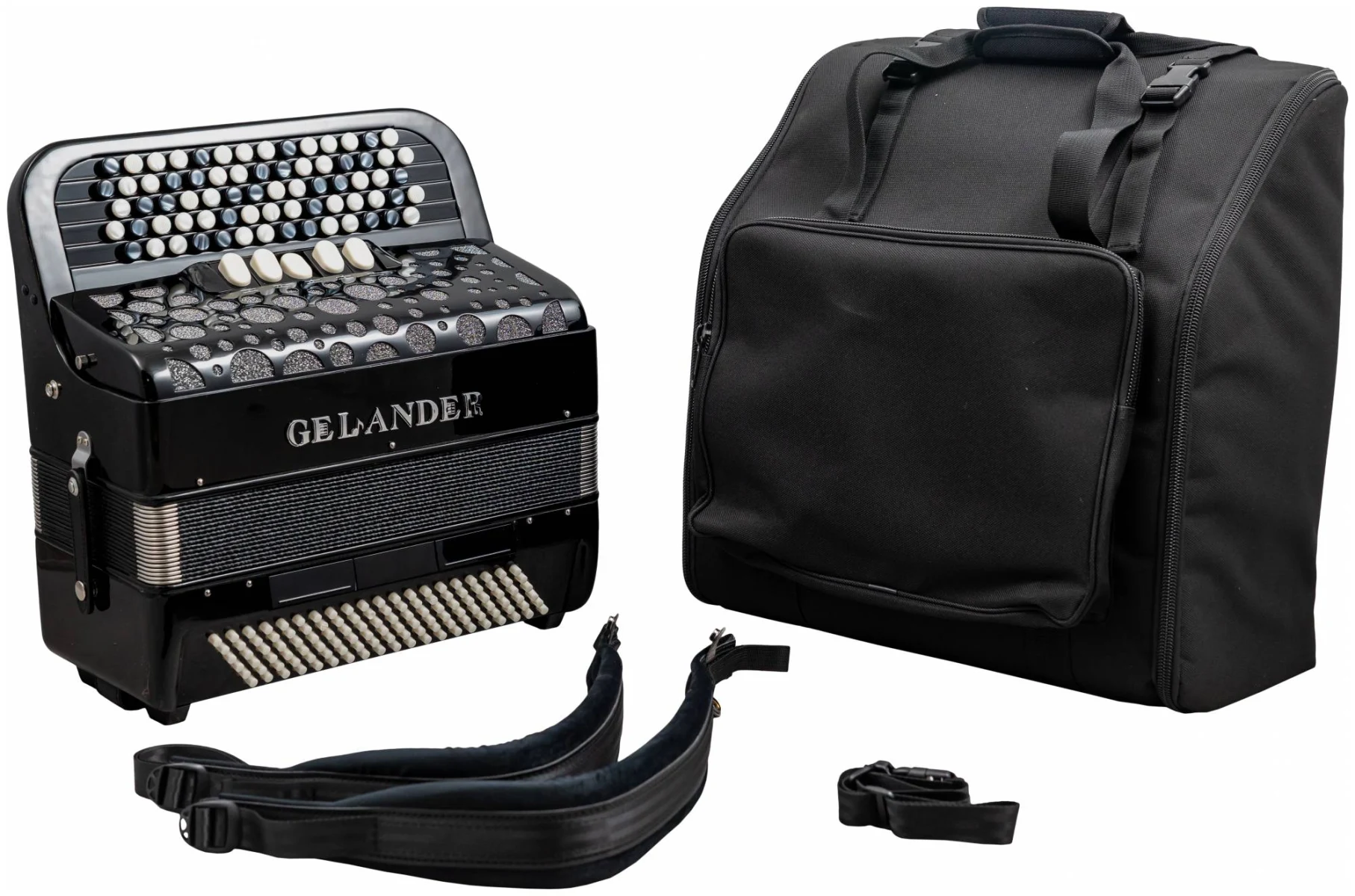 Баян ученический GELANDER GH5120-3B BK черного цвета с готовым аккомпанементом. В комплекте чехол и регулируемые ремни, которые позволяют настроить инструмент под индивидуальные параметры музыканта.