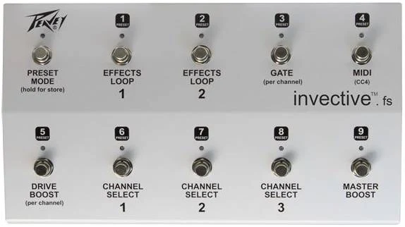 Входящий в комплект ножной переключатель имеет девять предустановок, которые еще больше помогут музыканту достичь желаемого тона. Две дистанционно переключаемые петли эффектов, переключатель половинной мощности и два вспомогательных разъема питания 9 В постоянного тока/500 мА для педалей эффектов дополняют заднюю панель.