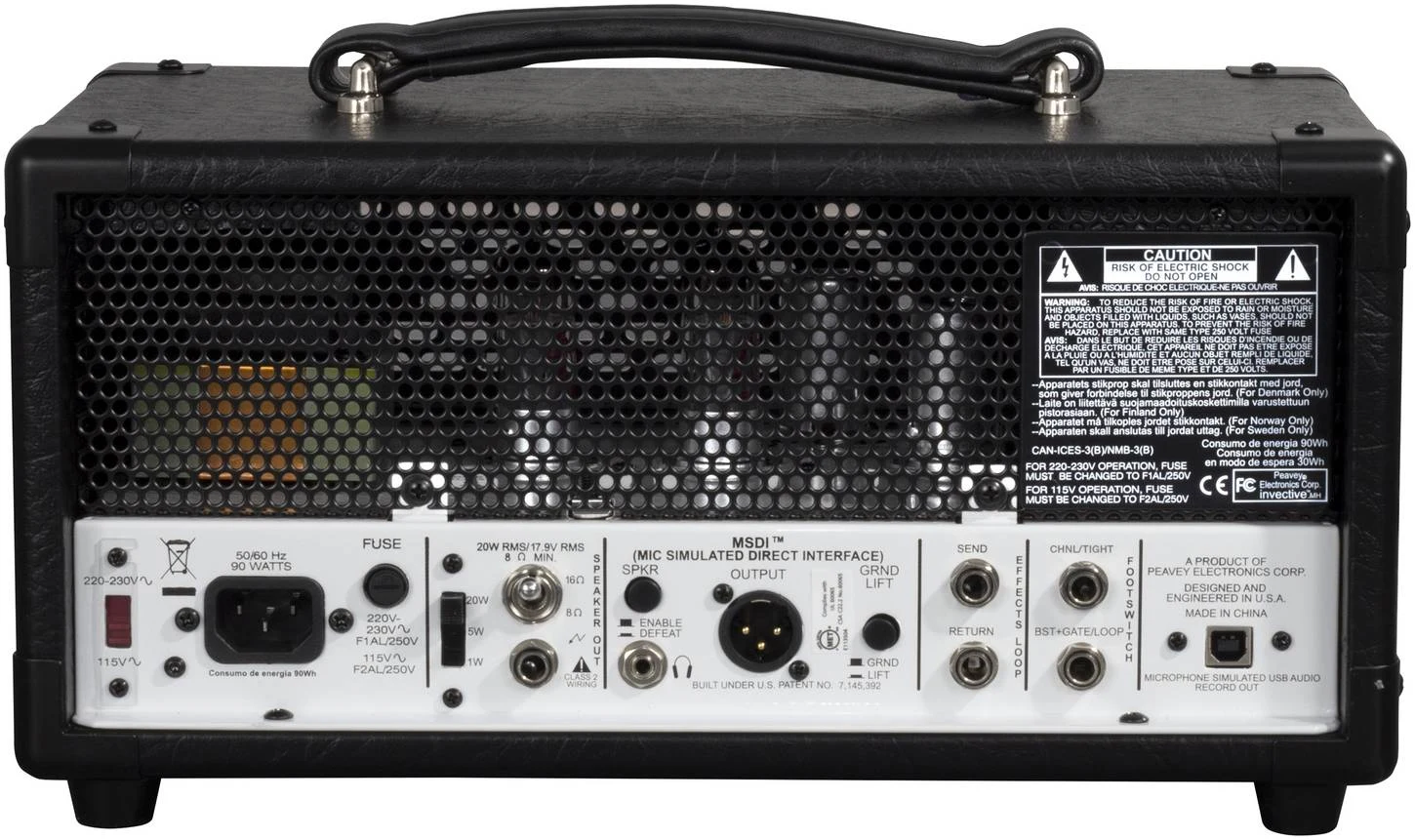 Задняя часть усилителя делает его одним из самых универсальных ламповых усилителей на рынке. Встроенная фиктивная нагрузка позволяет отключить выходной сигнал динамика для использования в наушниках или тихой записи, впервые у Peavey. Независимо от того, используете ли вы выход XLR или выход USB, invective®.MH идеально подходит для записи.
