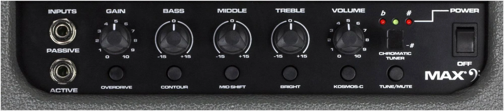 MAX также имеет встроенный хроматический тюнер с отключением звука, 1/8-дюймовый выход для наушников и 1/8-дюймовый вспомогательный вход. Усилитель также включает в себя прямой выход XLR с заземлением, а также встроенный твитер.