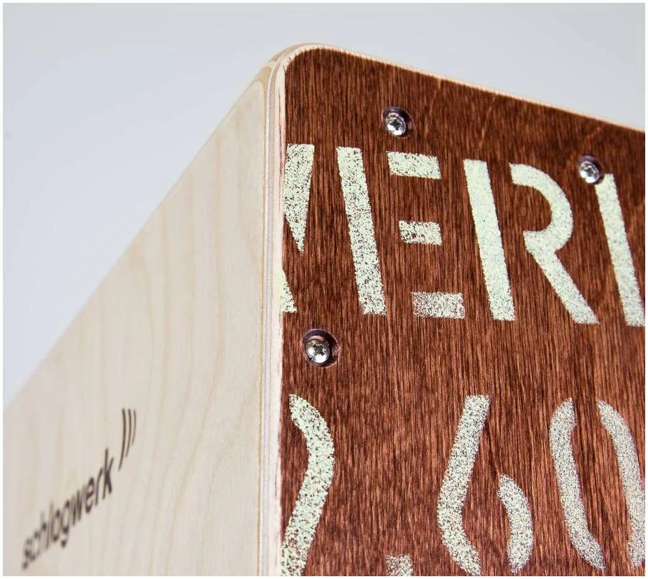 Его яркий дизайн стал своеобразной визитной карточкой всех кахонов SCHLAGWERK. Но, конечно, не только дизайн делает его таким популярным – причина – очень удобная технология Два в Одном. Она работает следующим образом: спирали внутри кахона прижаты к игровой поверхности под таким углом, который делает звук кахона похожим на звук малого барабана. Но в любой момент можно убрать этот эффект одним быстрым движением и получить традиционное звучание.