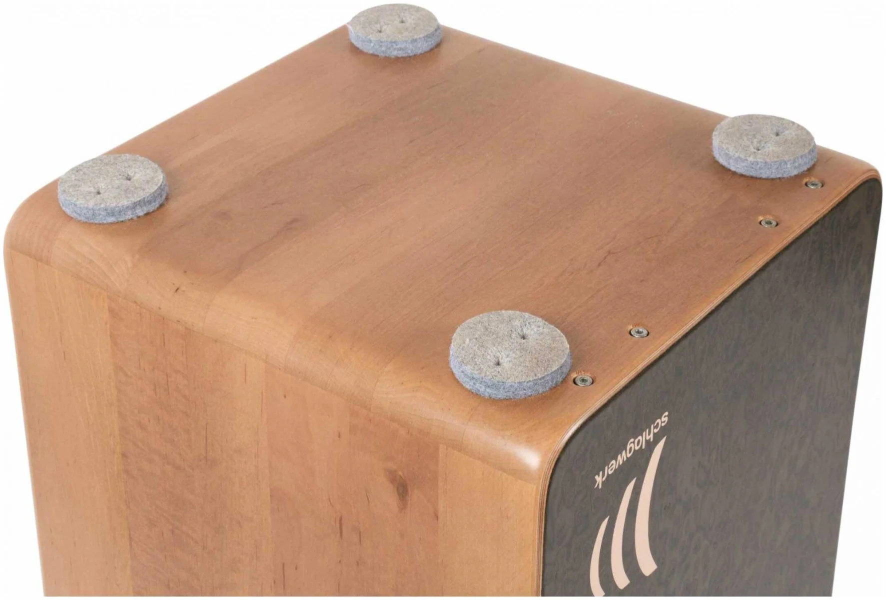 Корпус SCHLAGWERK CP4907 серии La Perù EVO изготовлен из массива копченой ольхи, с задней панелью из бука и лицевой панелью/тапой из дизайнерского шпона. Игровая поверхность наполовину приклеена, наполовину прикручена для типичного баса La Perù.