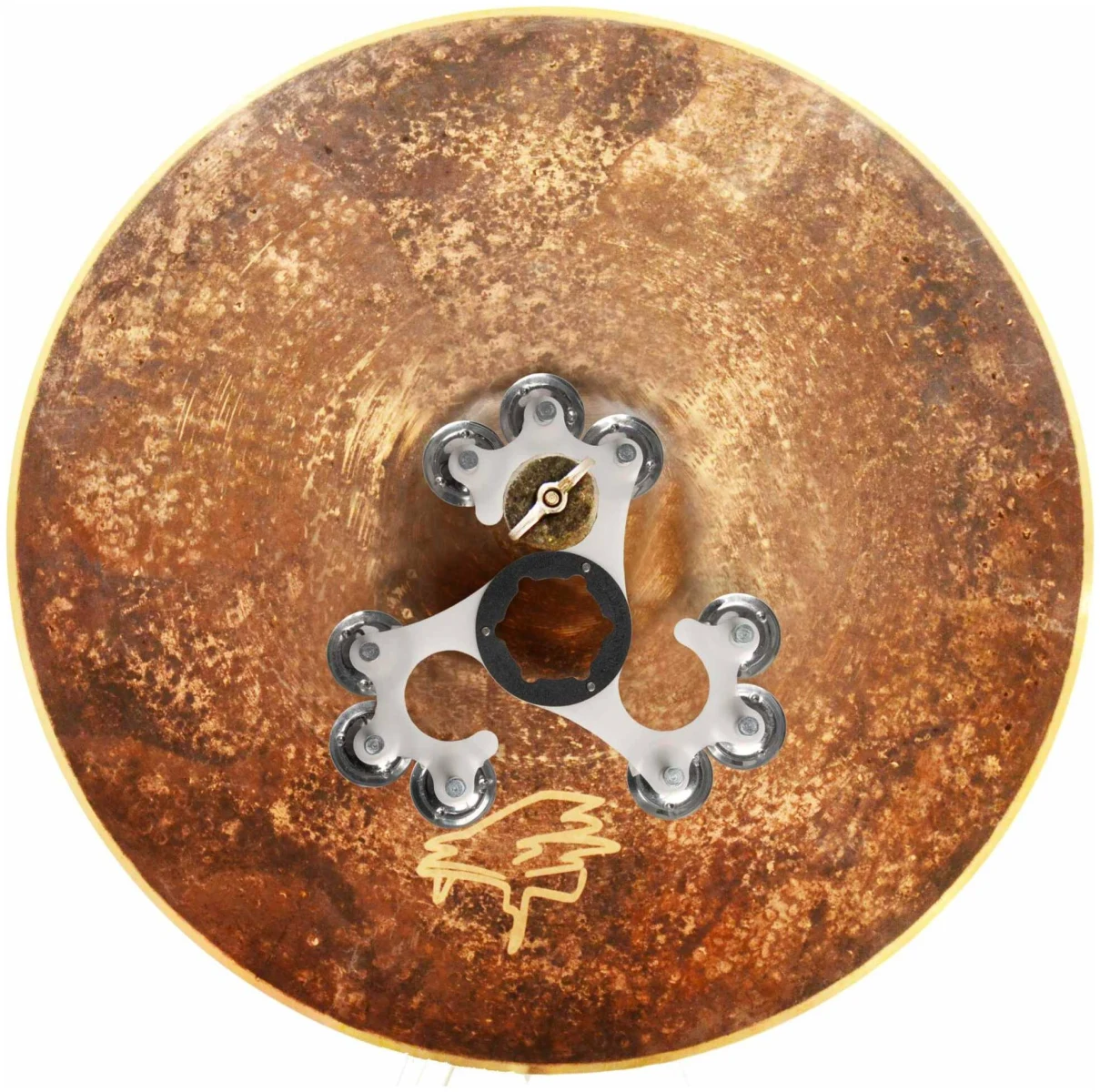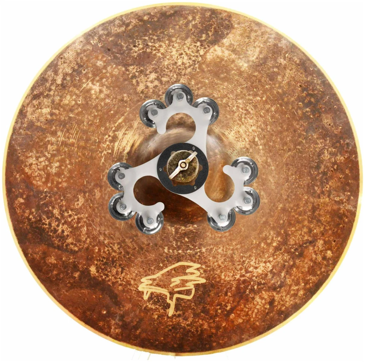 Многофункциональный кольцевой перкуссионный эффект ORUGA HSO с 9 стальными джинглами. Благодаря универсальному коннектору его можно быстро и легко установить на любой хай‑хэт или тарелку. А форма крючка позволяет использовать его в различных целях и стилях. Эффект добавит яркости и высоких чатот оригинальному звучанию ваших тарелок.